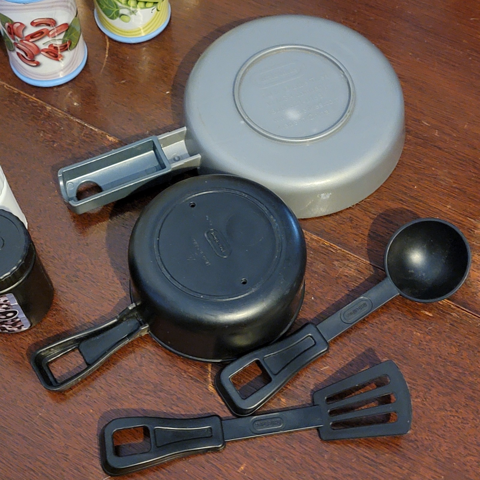 как выглядит Vintage Little Tikes Play Kitchen Lot Pots Pans Utensils Salt Pepper, Food фото