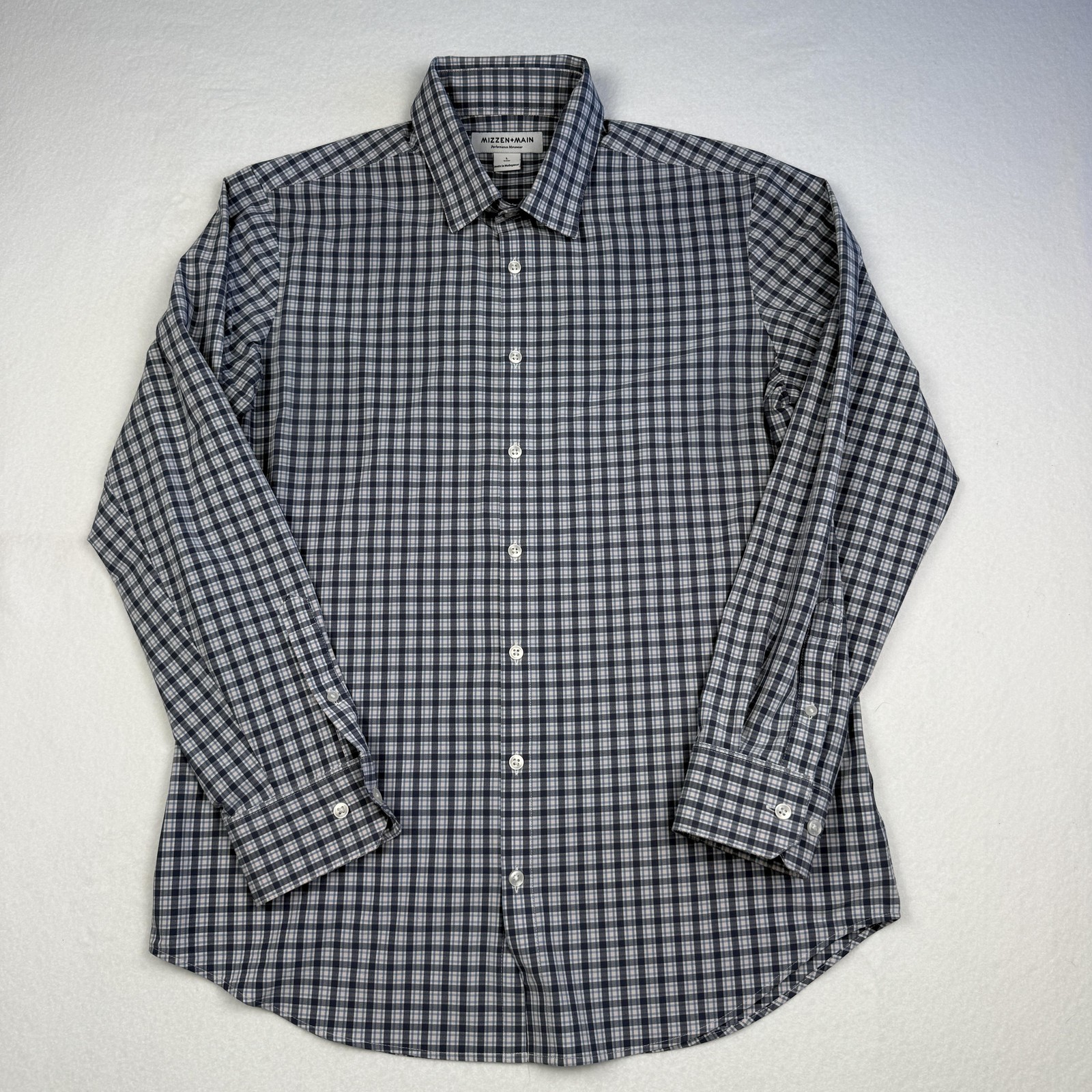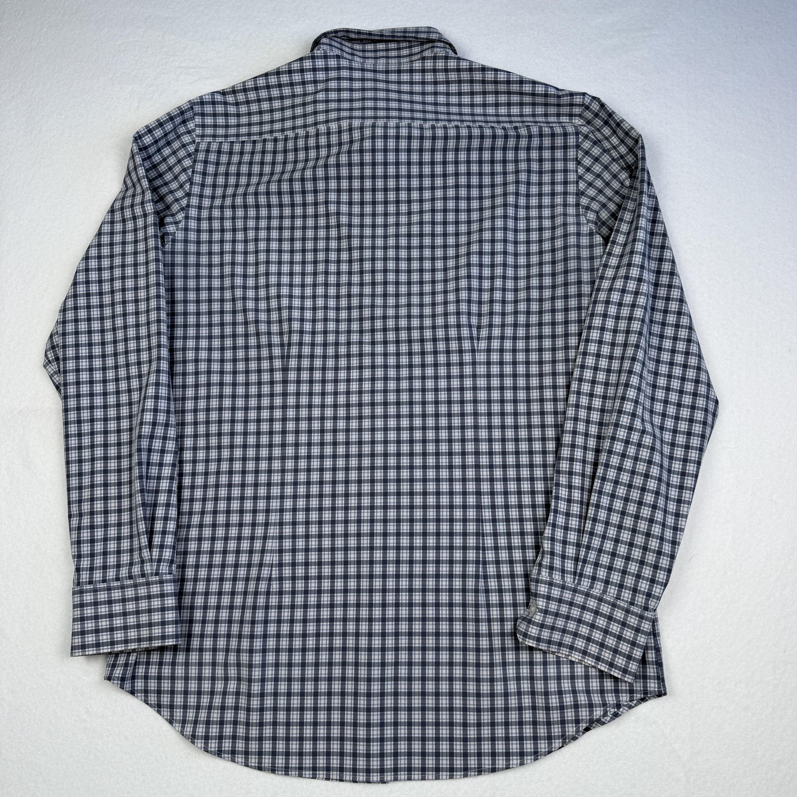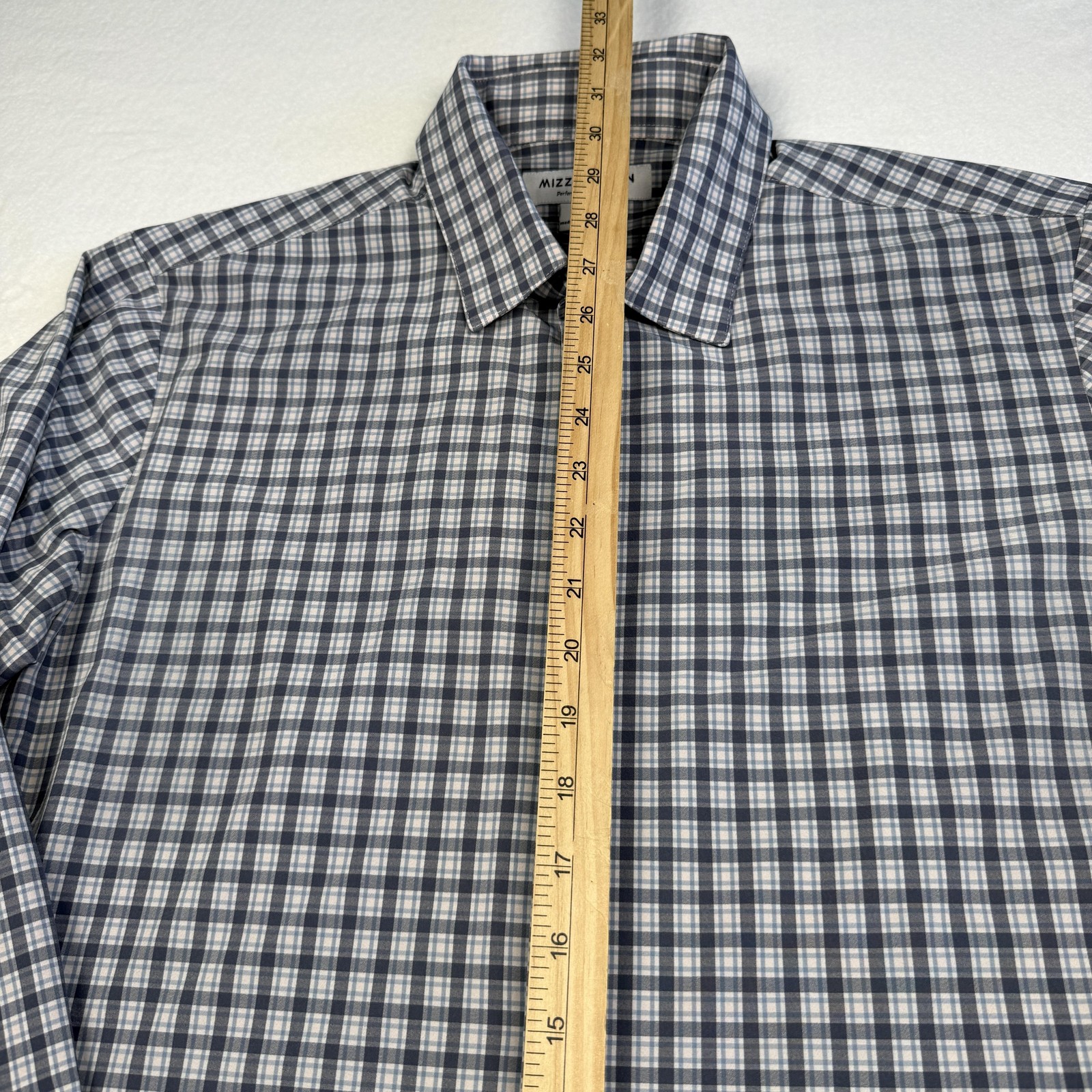 как выглядит Mizzen Main Shirt Mens Large Blue Gray Plaid Trim Fit Performance Stretch Dress фото