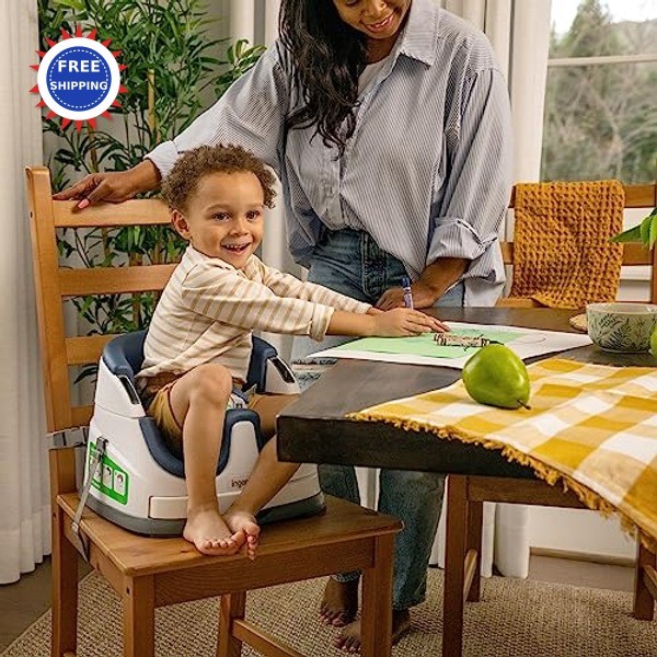как выглядит Ingenuity Baby Base 2-in-1 Booster Feeding and Floor Seat Night Sky Self-Storing фото
