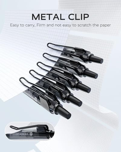 12 Pack Black Gel Pens - Quick Dry 0.5mm Fine Point Retractable Smooth Writing f