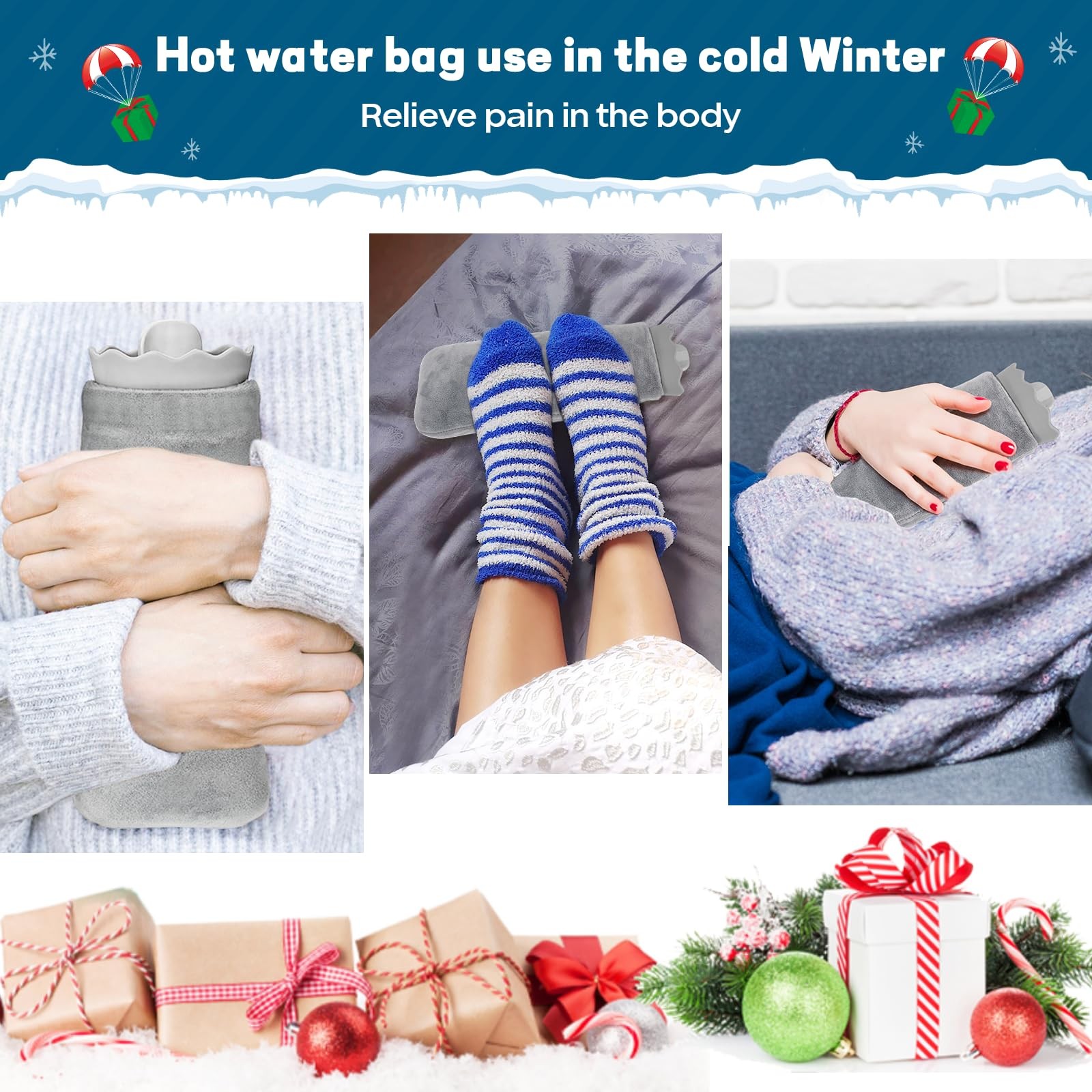 Silicone Hot Water Bottle with Cover - 650ml Bag for Grey