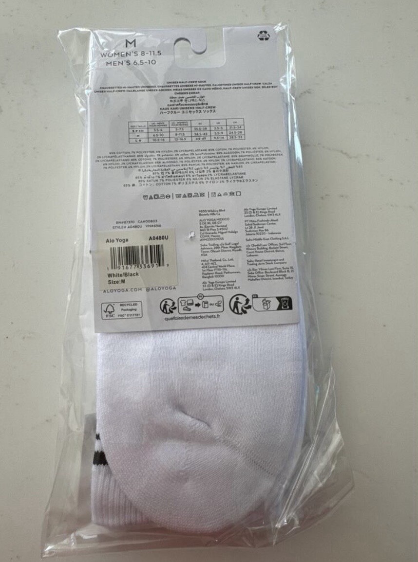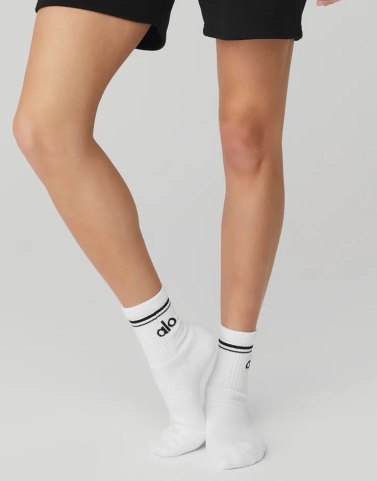 как выглядит New Alo Yoga White Unisex Half-Crew Throwback Socks Medium Everyday Performance фото