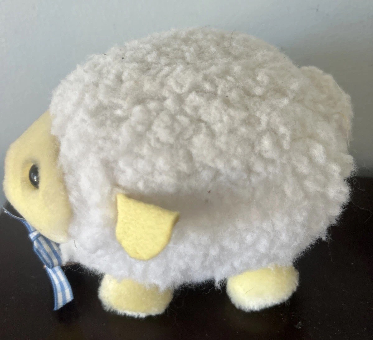 Vintage Stuffed Plush Sheep Eden Baby Ball Plump Cream Lamb Bell Rattle Cowbell