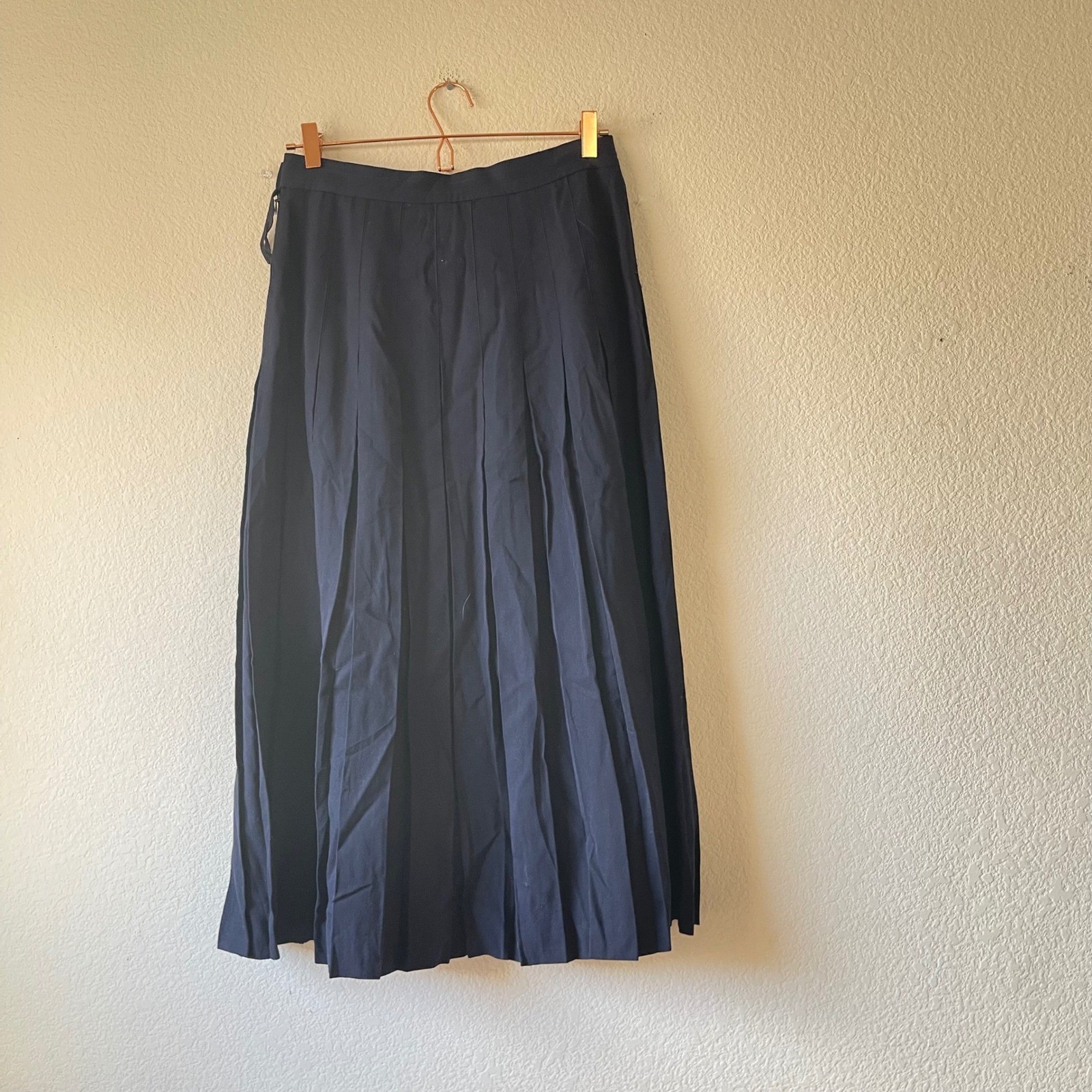 как выглядит Vinage Navy 100 Wool Pleated Midi Skirt Size Medium Made in USA Dark Academia фото