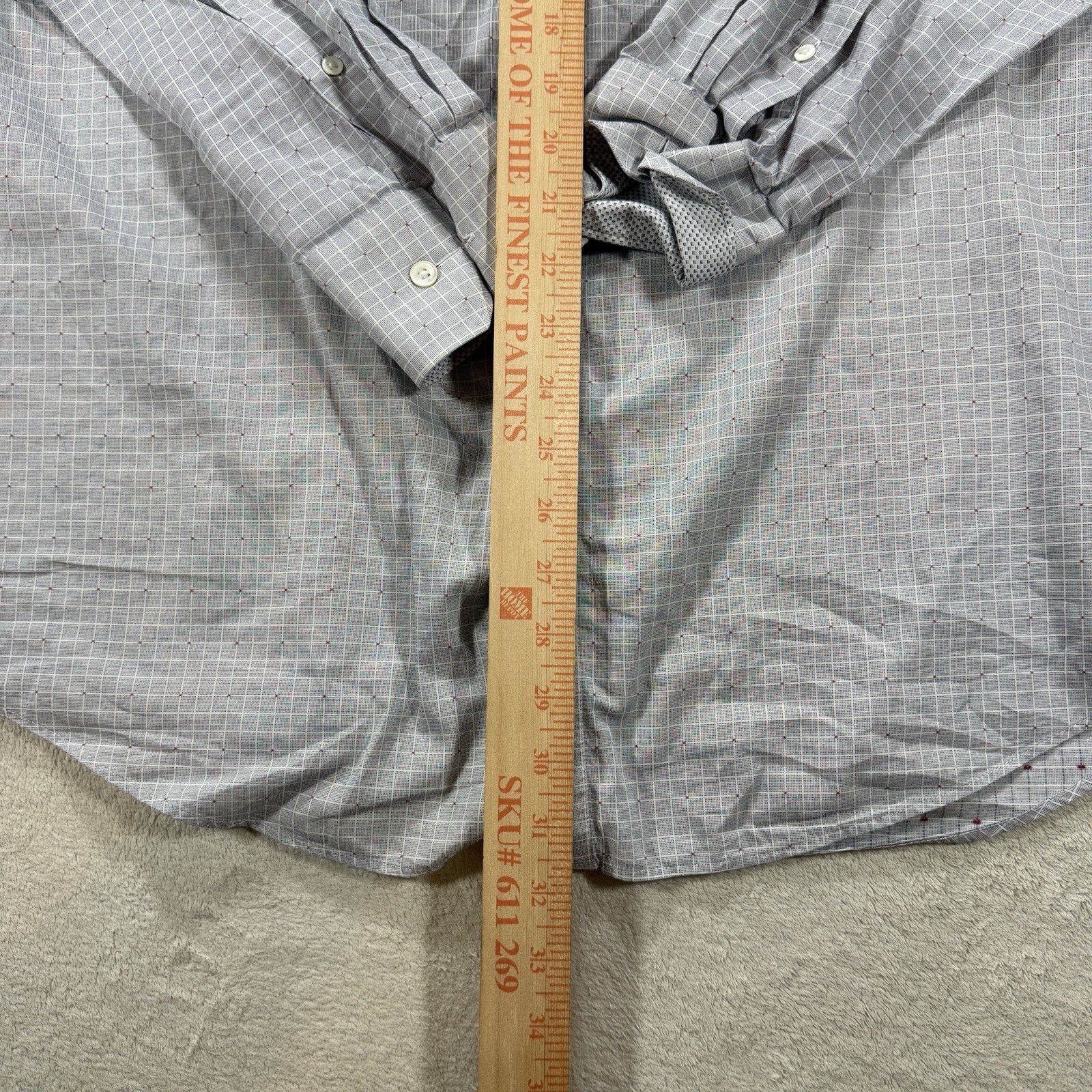 Bugatchi Uomo Men's Button Down Dress Shirt Grey Geometric Size 18 36/37