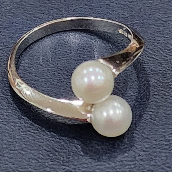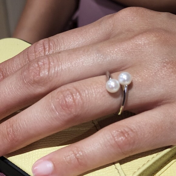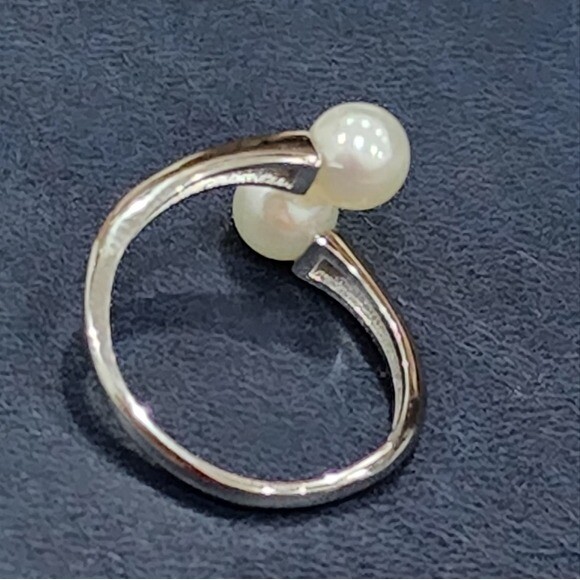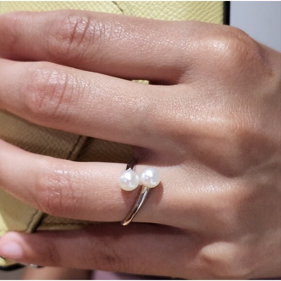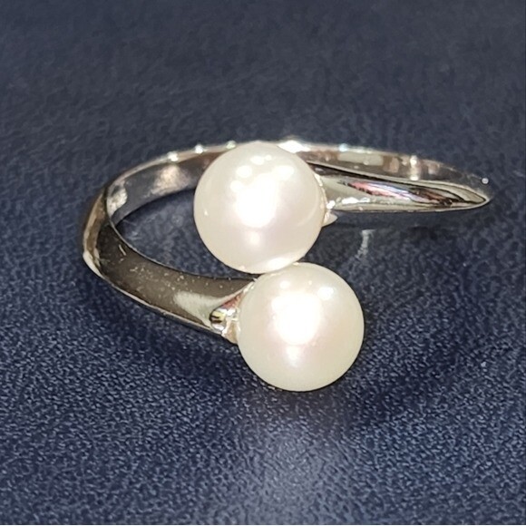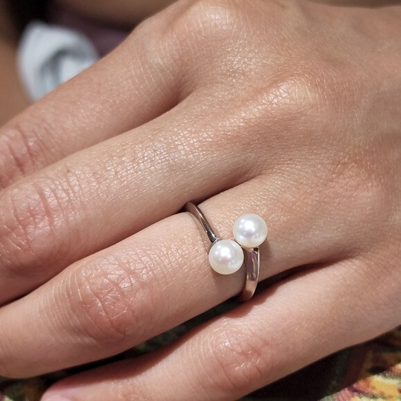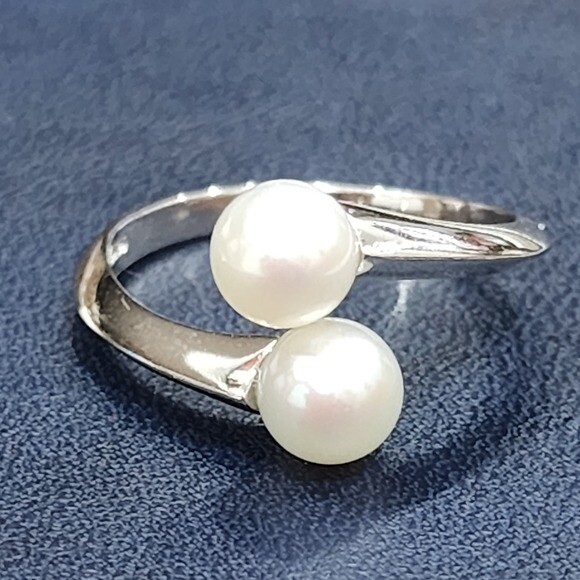 как выглядит 925 Sterling Silver Double Cultured White Freshwater Pearl Adjustable Ring фото