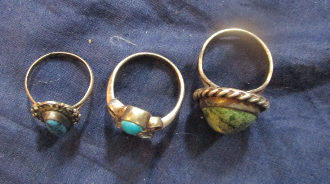 как выглядит 3 NICE VINTAGE STERLING SILVER RINGS WITH SETS, NICE ONES, SZ 6 1/2, 7 1/2 8 фото
