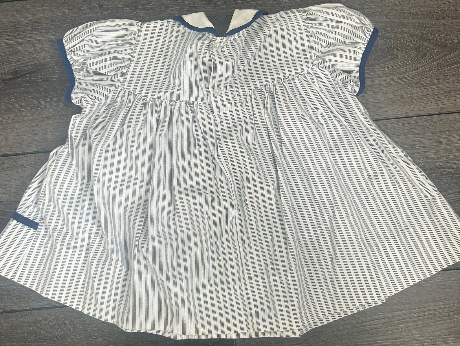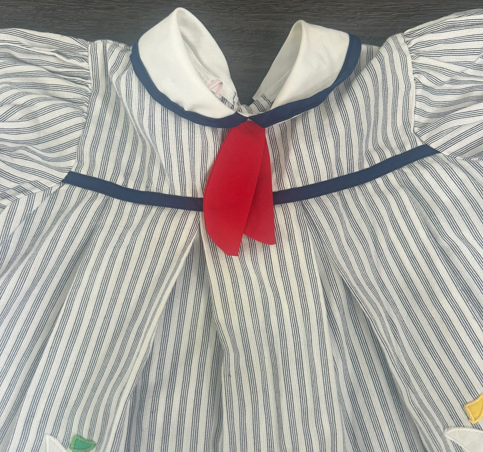 Retro BABY TOGS Girl Dress 24 Mo Sailor Striped Blue White w/ Sail Boats Vntg