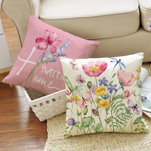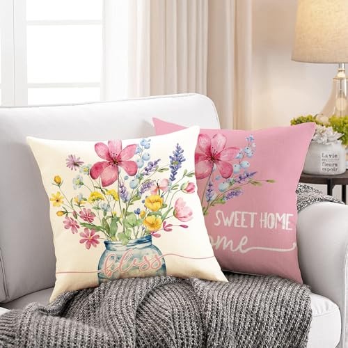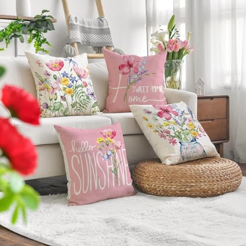 Spring Outdoor Throw Pillow Covers 18x18 18 x 18 Pack of 4 Wildflower-pink