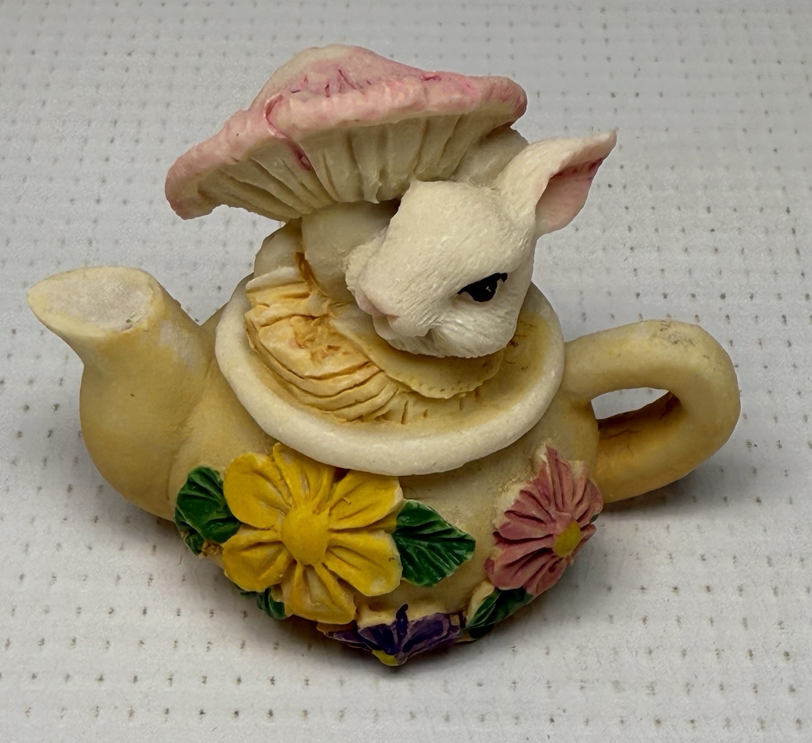 Mini Bunny Tea Set Resin 4 1/4 In. Plate With Tiny Teapot Set With Box