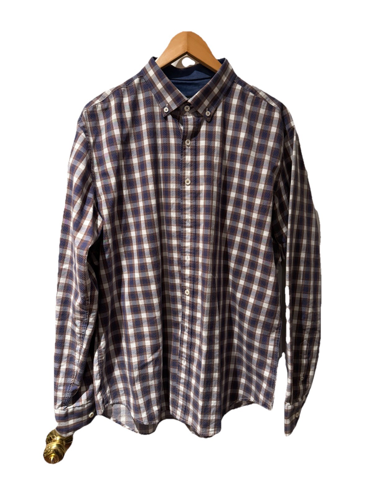 Bugatchi Plaid print classic fit Premium cotton Long Sleeve Dress shirt, size M