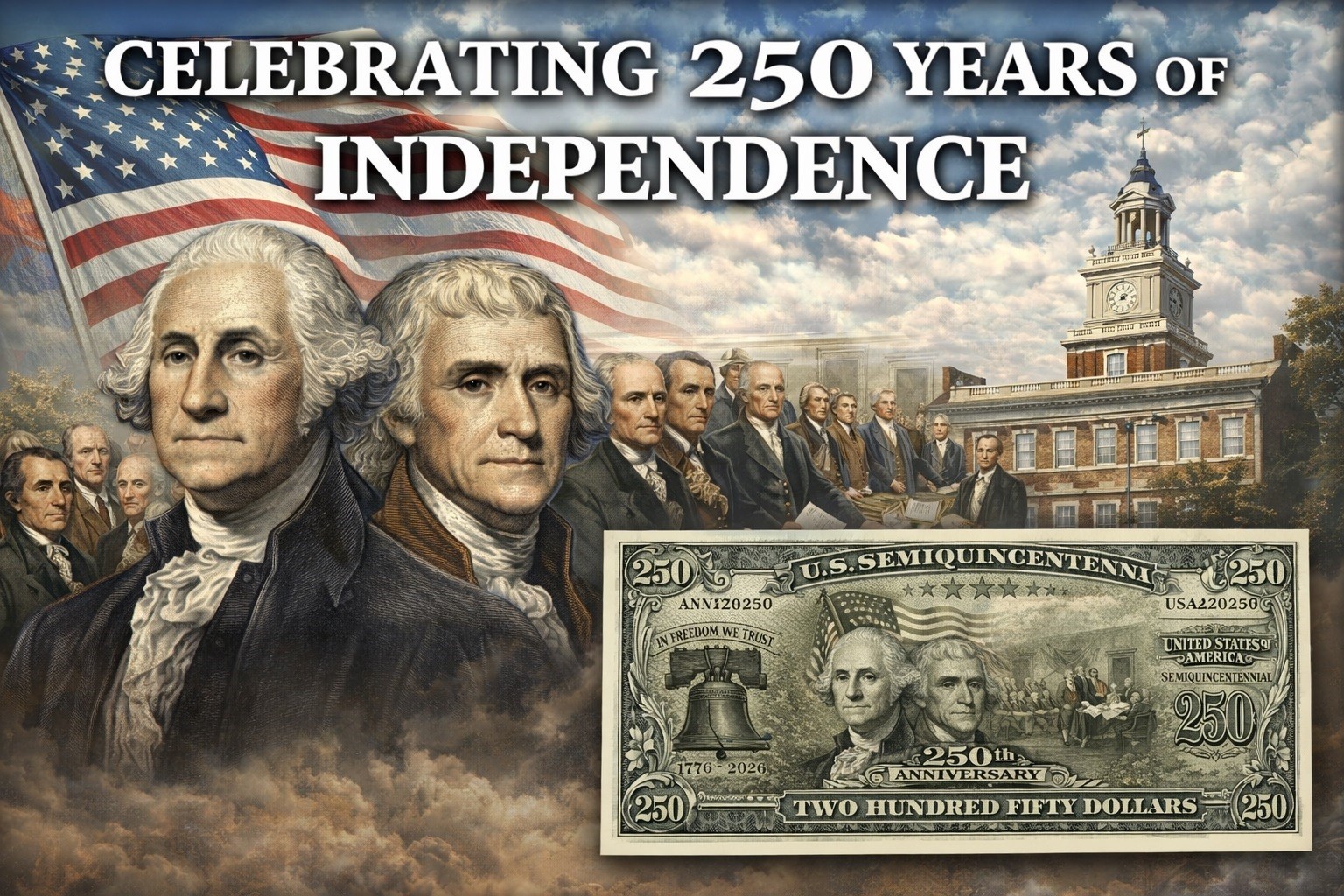 • 100 U.S. Semiquincentennial 250th Anniversary Commemorative Money Bill Banknotes