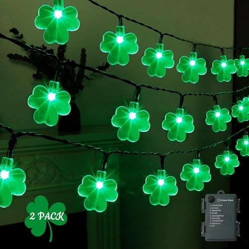 St. Patricks Day String Lights Outdoor, 50 LED 16 FT Shamrocks Decorative 2