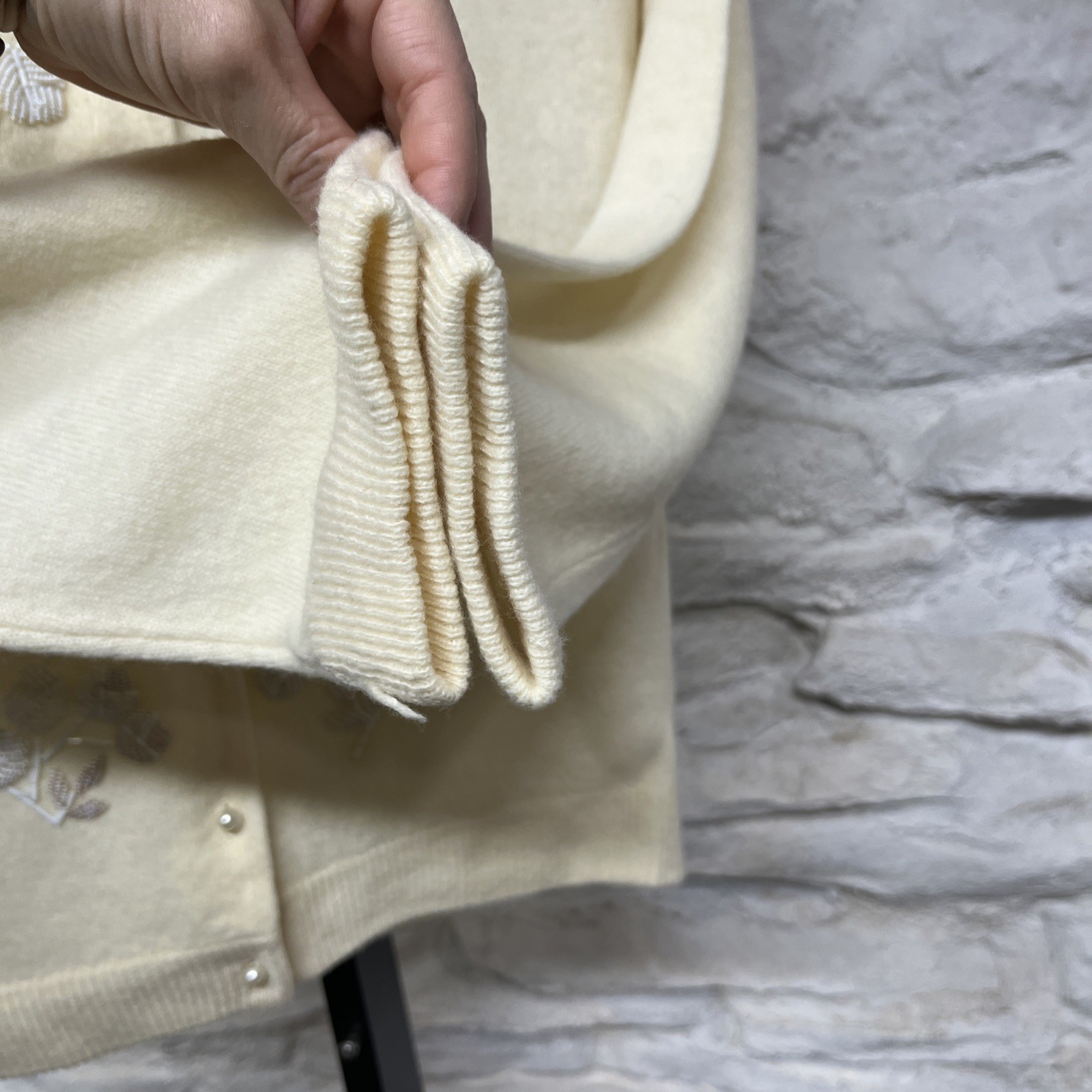 как выглядит Johnson Yu Vintage 1950s 60s Beaded 100 Lambs Wool Sweater Cottage Core Trad фото