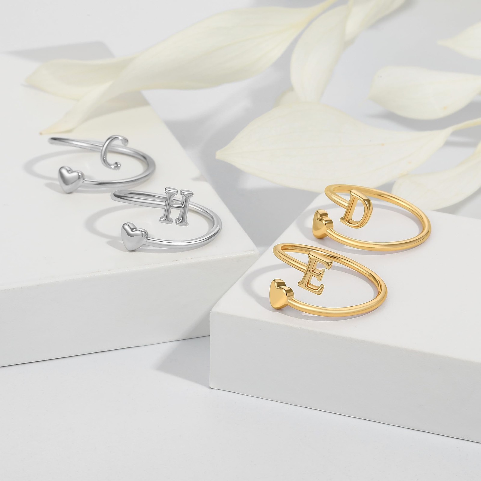Ailetop Rings for Teen Girls - Gold Initial M Heart Ring Adjustable, 14K