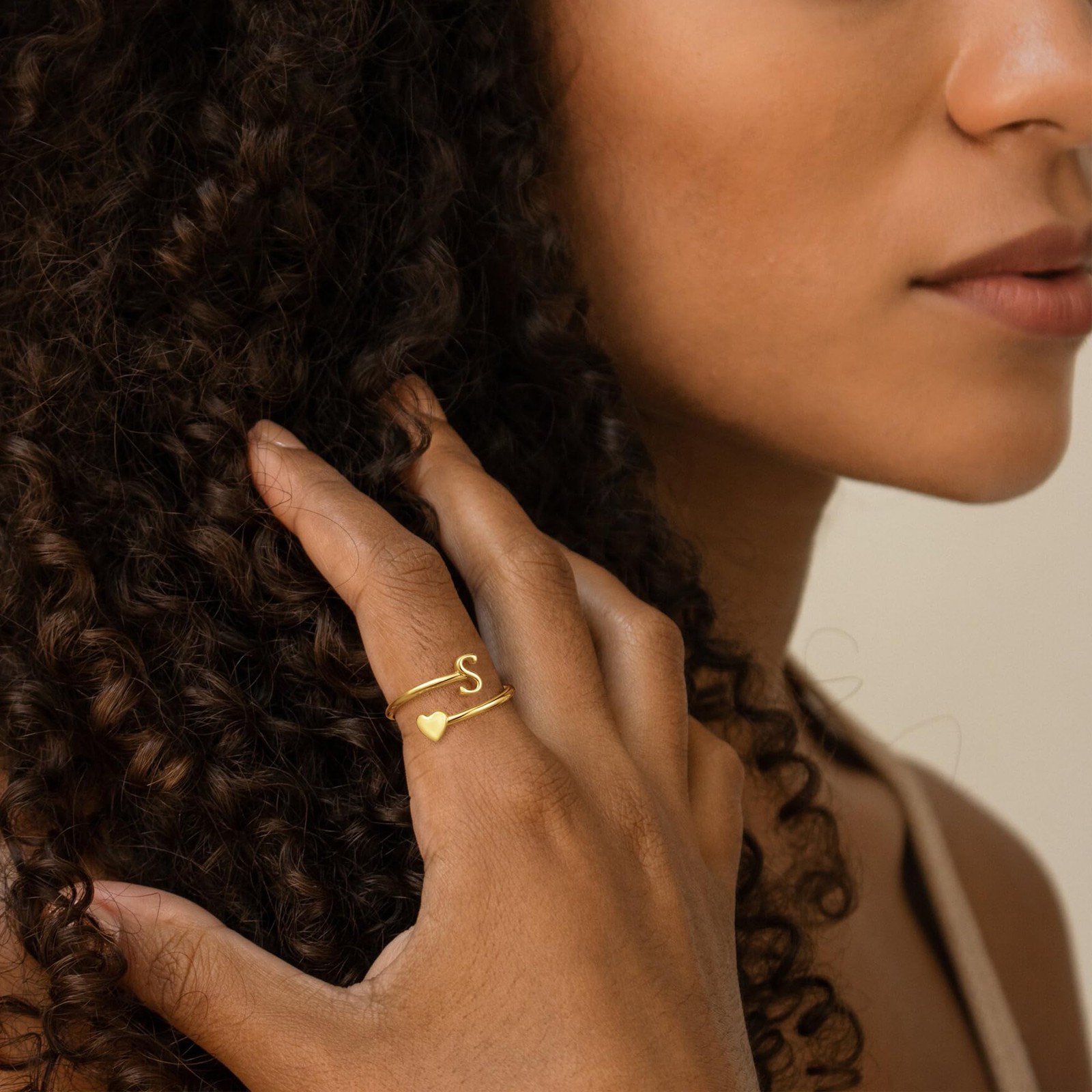 как выглядит Ailetop Rings for Teen Girls - Gold Initial M Heart Ring Adjustable, 14K фото