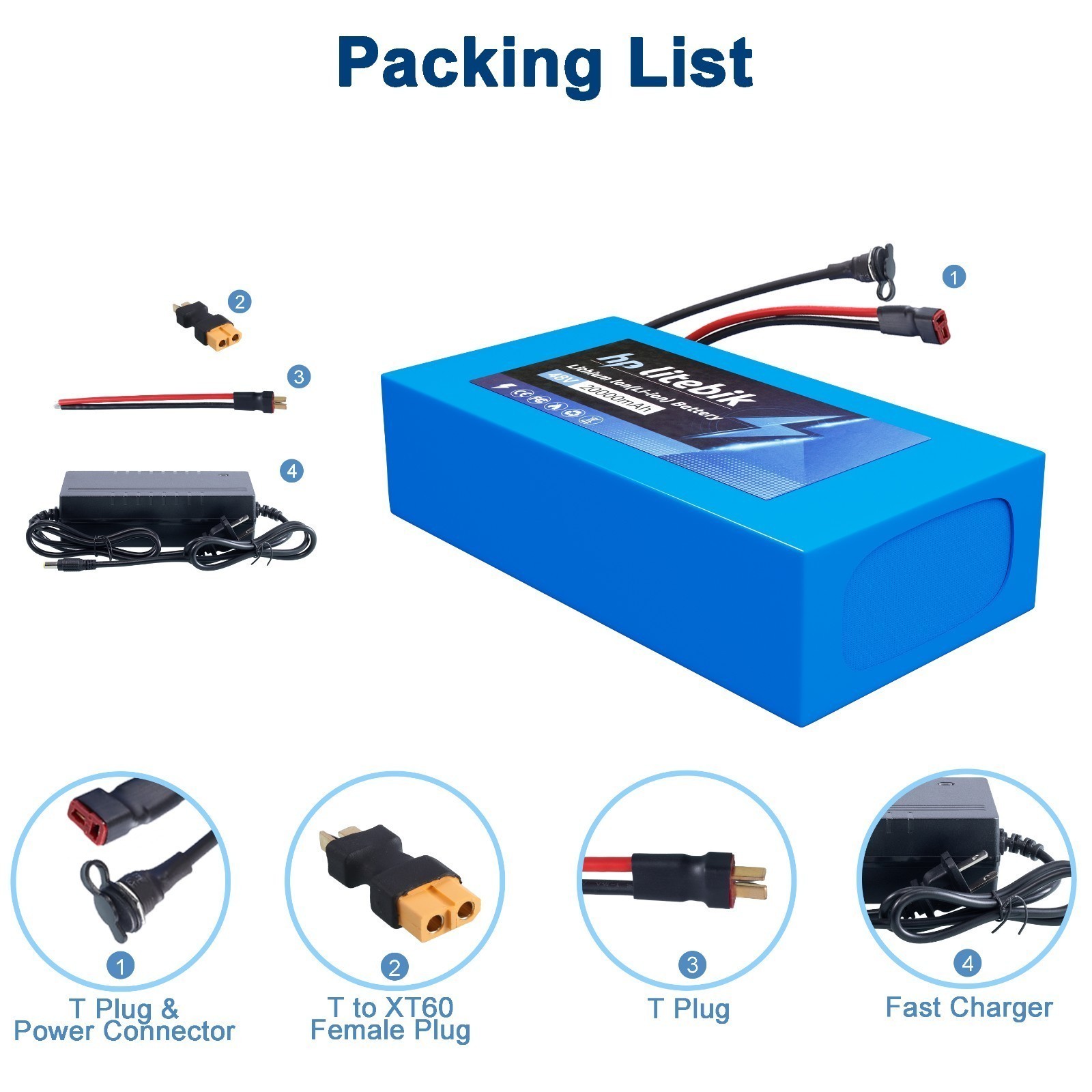 Set Includes: T Plug, Fast Charger, T to XT60 Female Plug, Lithium Battery