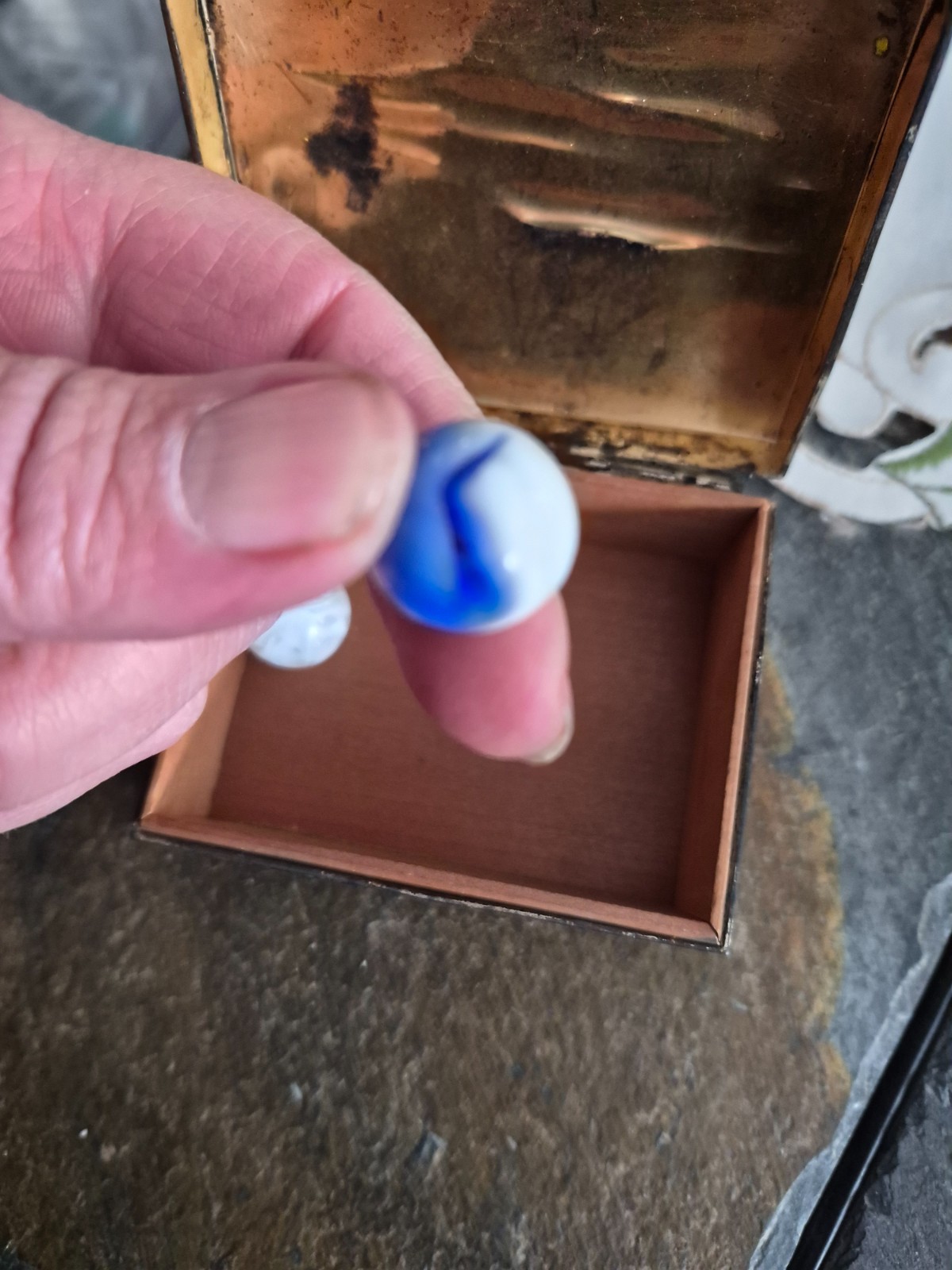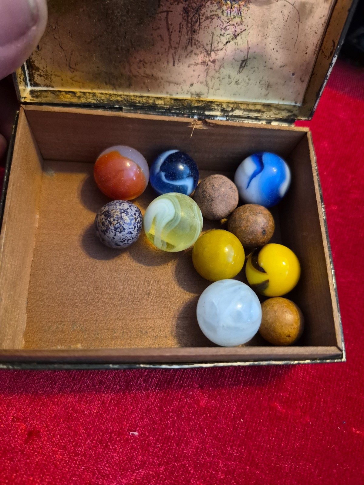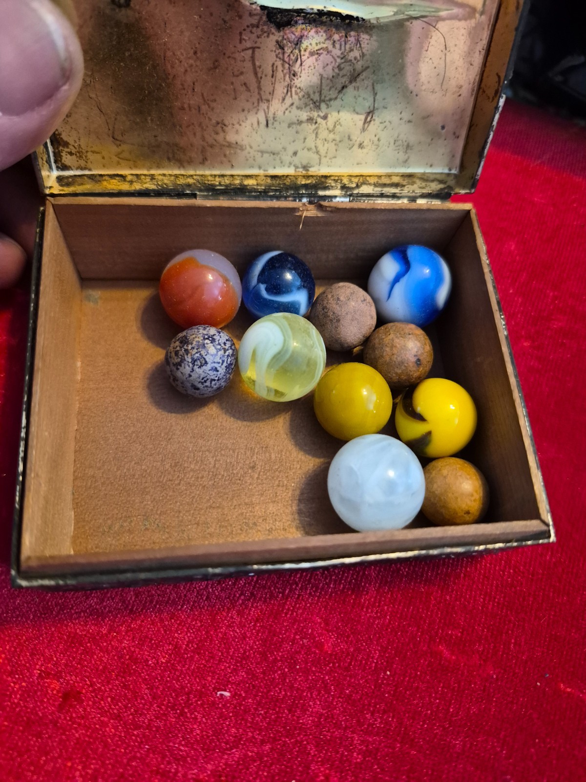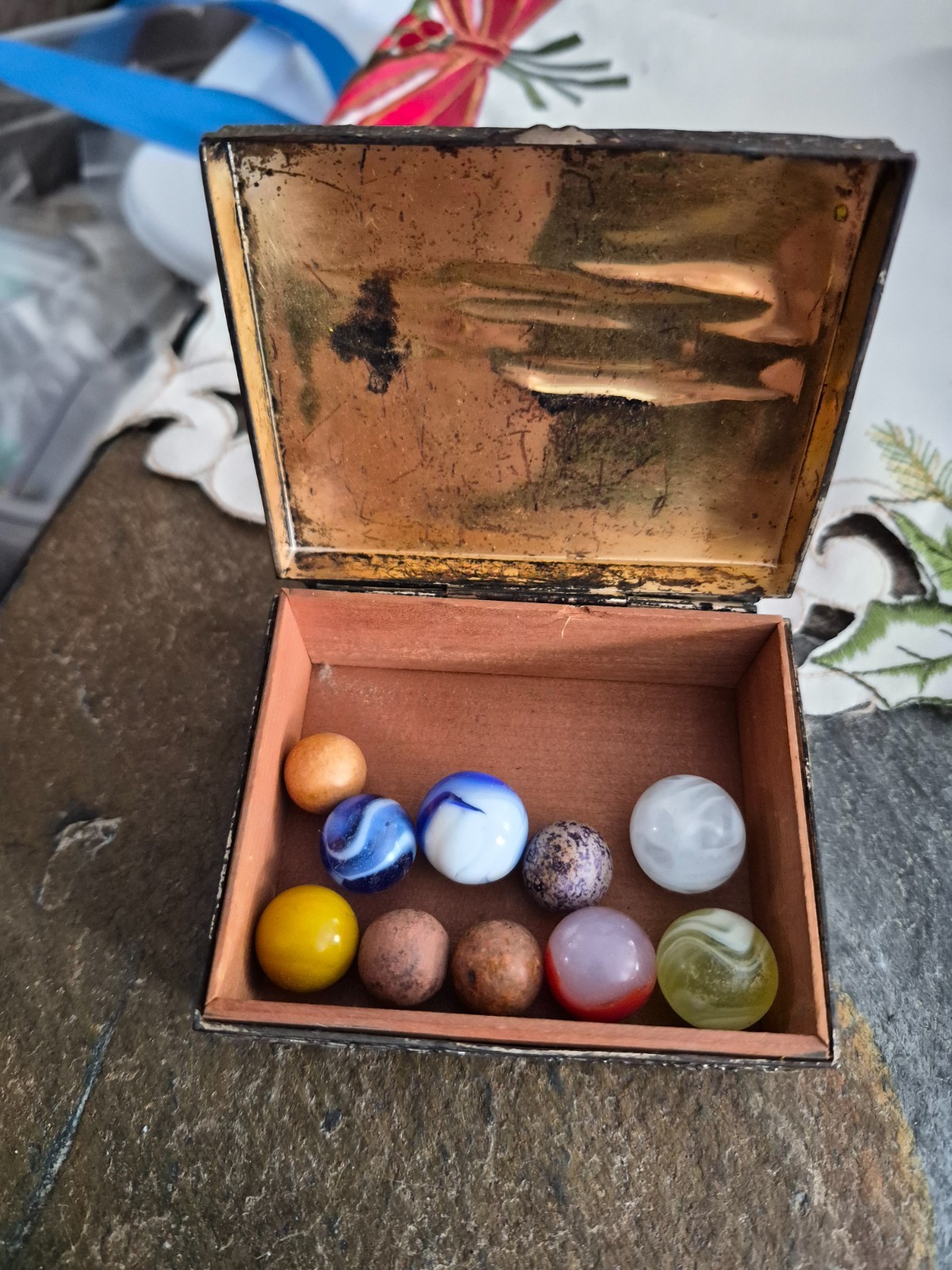 как выглядит old marbles lot in nice old tin box estate find фото
