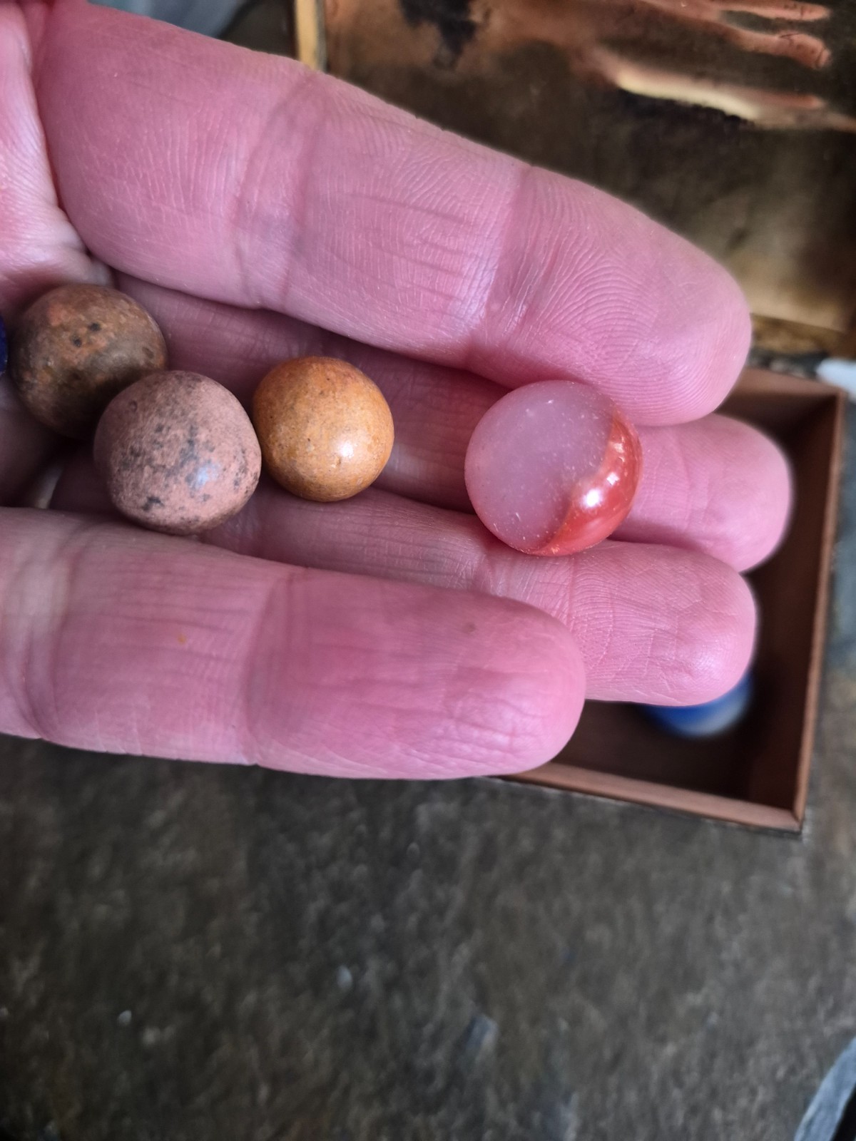 old marbles lot in nice old tin box estate find