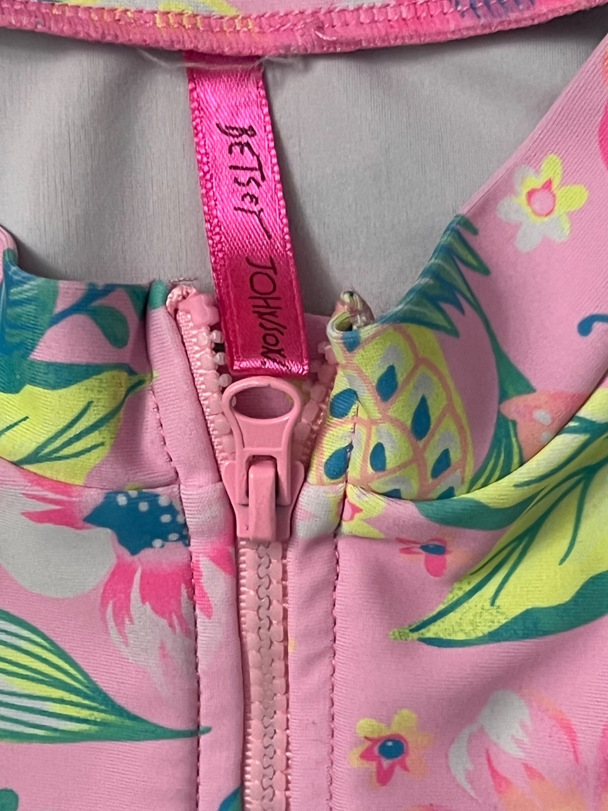 Betsy Johnson tropical pineapple and lemon rash guard, girls