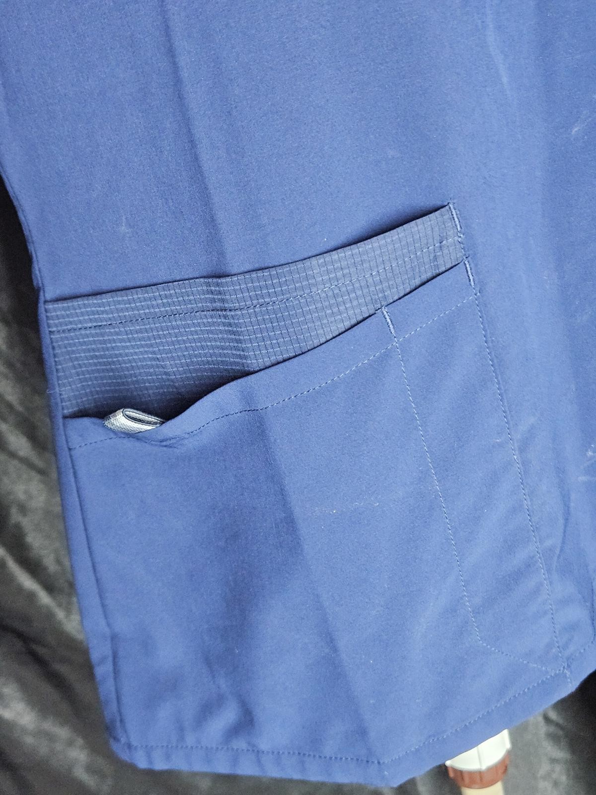 как выглядит Barco One Wellness Scrub Top Womens Small Blue V-Neck Stretch 5 Pockets D/16 фото