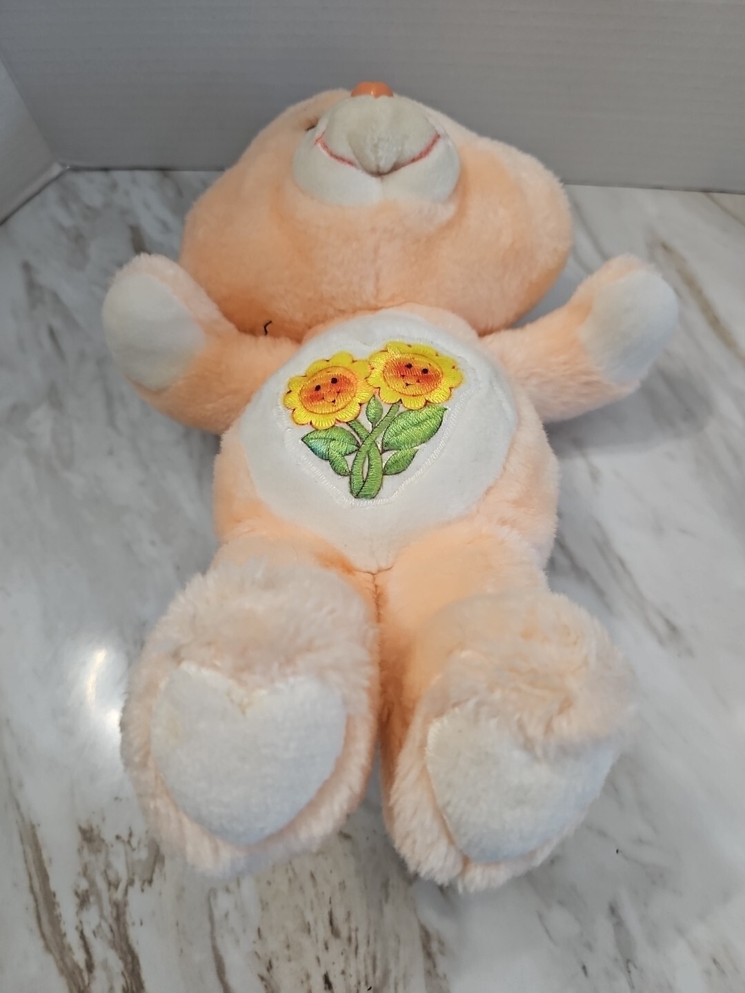 как выглядит 1983 Vtg Care Bears 13" Friend Bear Plush Stuffed Animal Toy Peach Smile Flowers фото