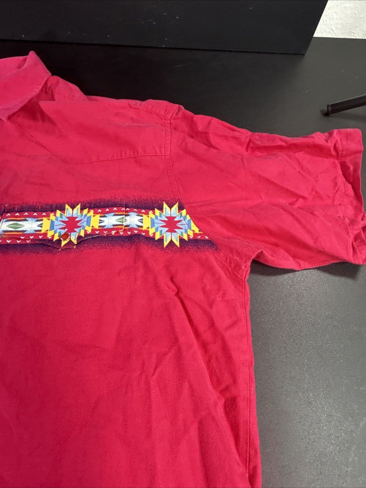 как выглядит Western Vintage Wrangler Aztec Polo Shirt Men s XL Pearl Snap Buttons фото