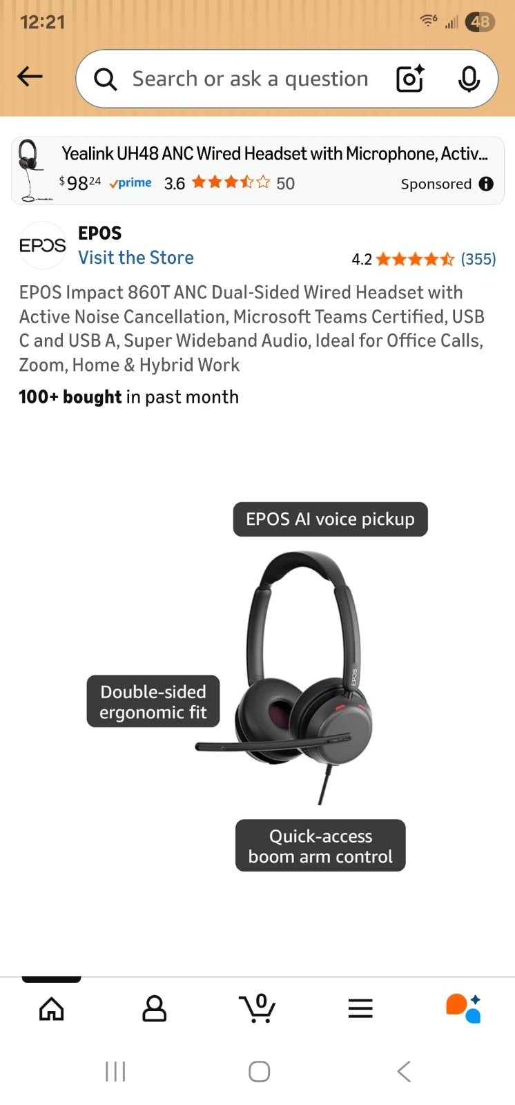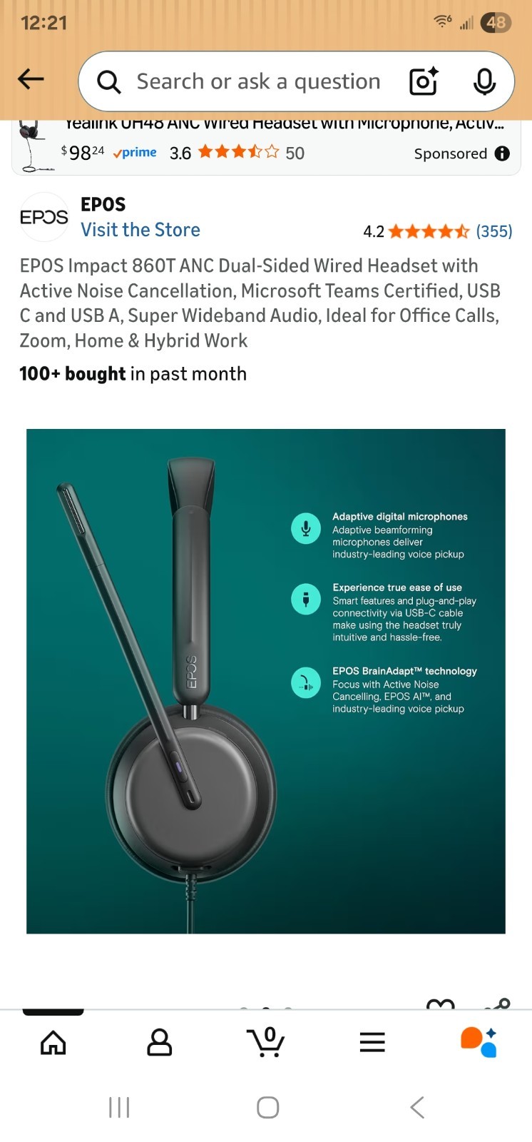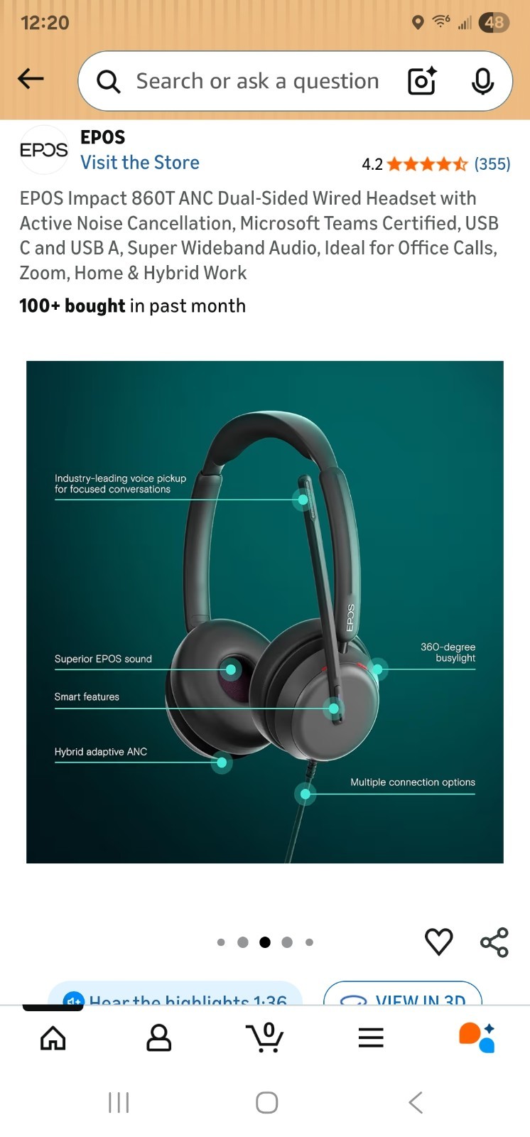 EPOS IMPACT 860T ANC Dual-Sided Wired Headset, USB-C USB-A Microsoft Teams NEW