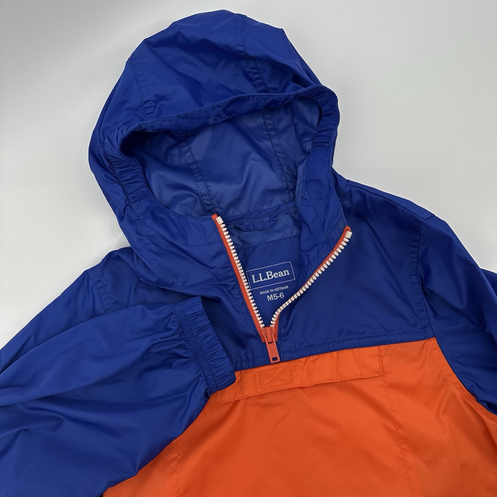 L.L. Bean Anorak Jacket Youth 5/6 Rain Windbreaker Pullover Blue Hood Unisex