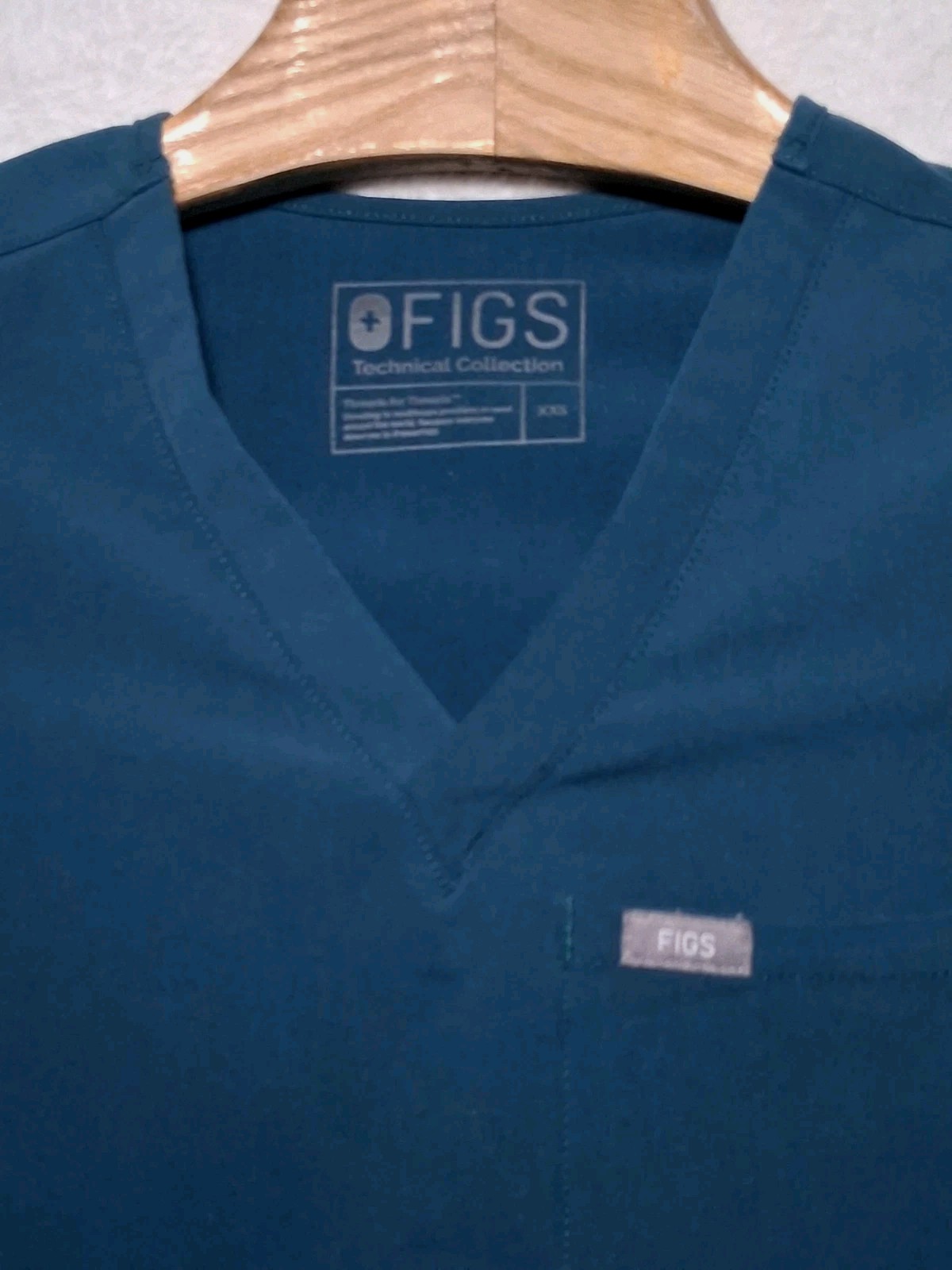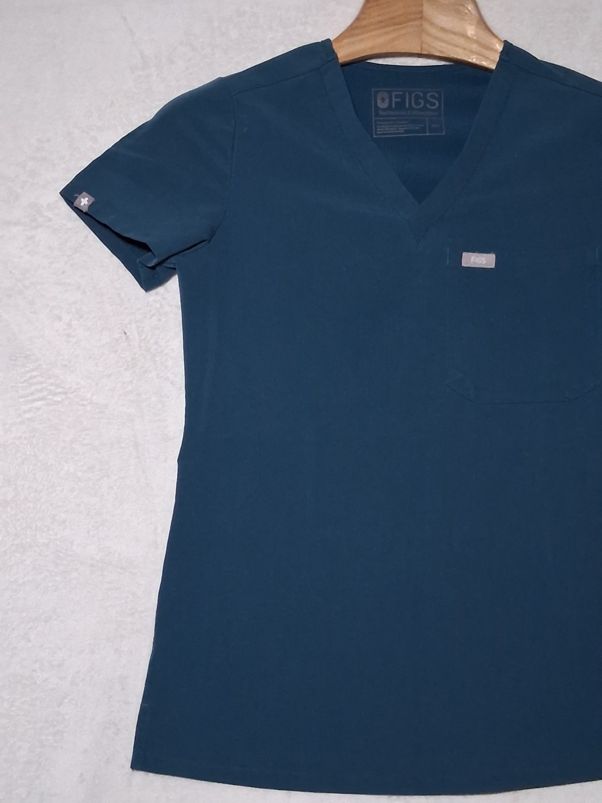 как выглядит Figs Scrub Top Womens XXS Caribbean Blue Catarina One Pocket Uniform PO 1596 фото