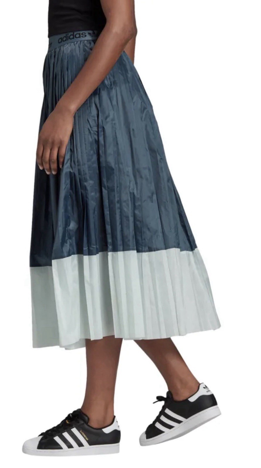 NWT 80 Adidas Originals Pleated Midi Skirt Legacy Blue/Dash Green Sz XS FU3757