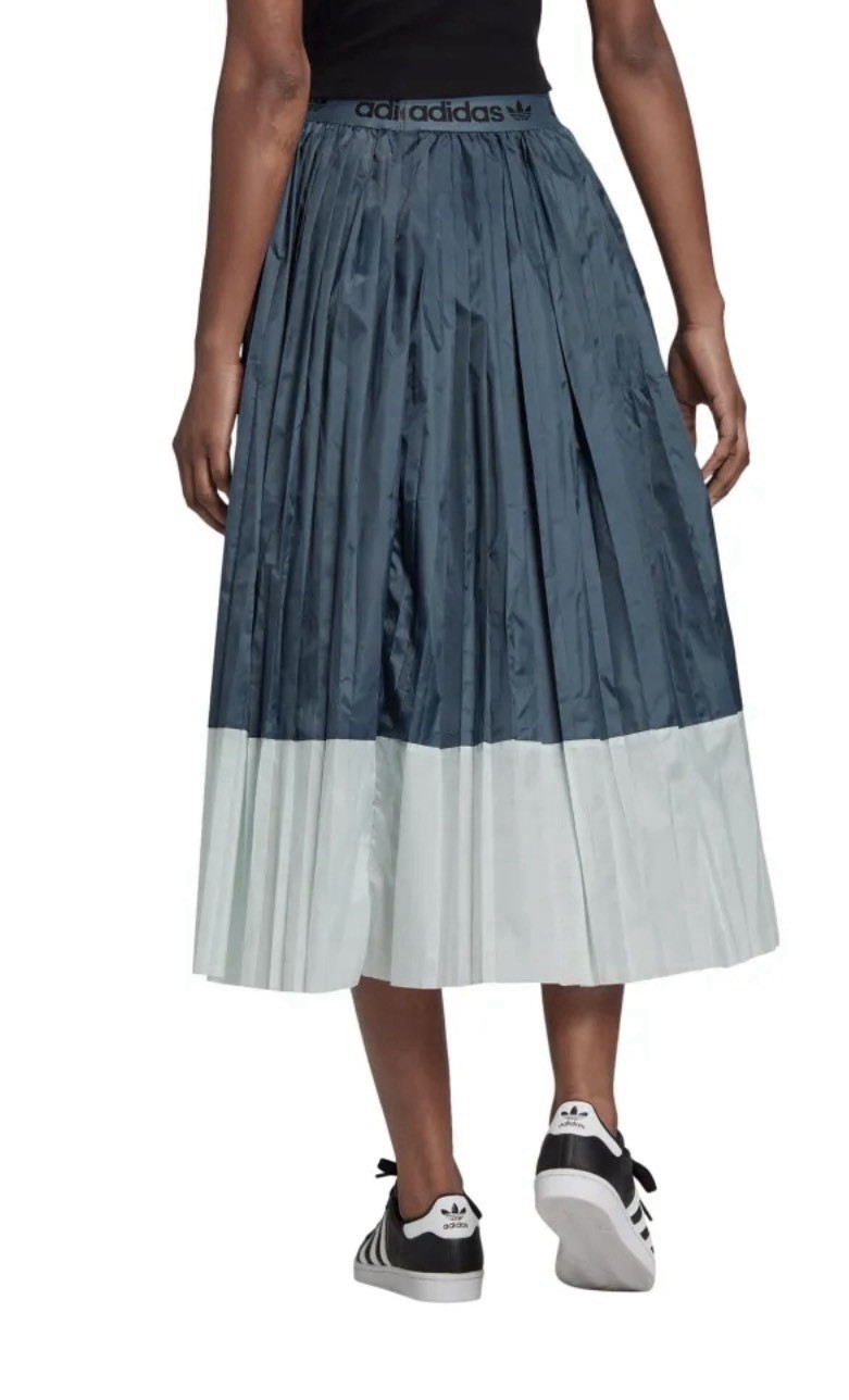 как выглядит NWT 80 Adidas Originals Pleated Midi Skirt Legacy Blue/Dash Green Sz XS FU3757 фото