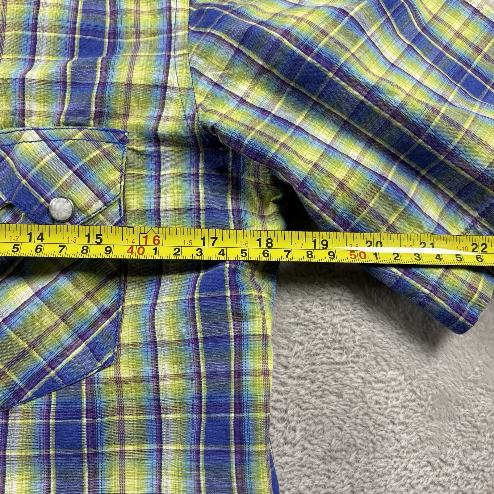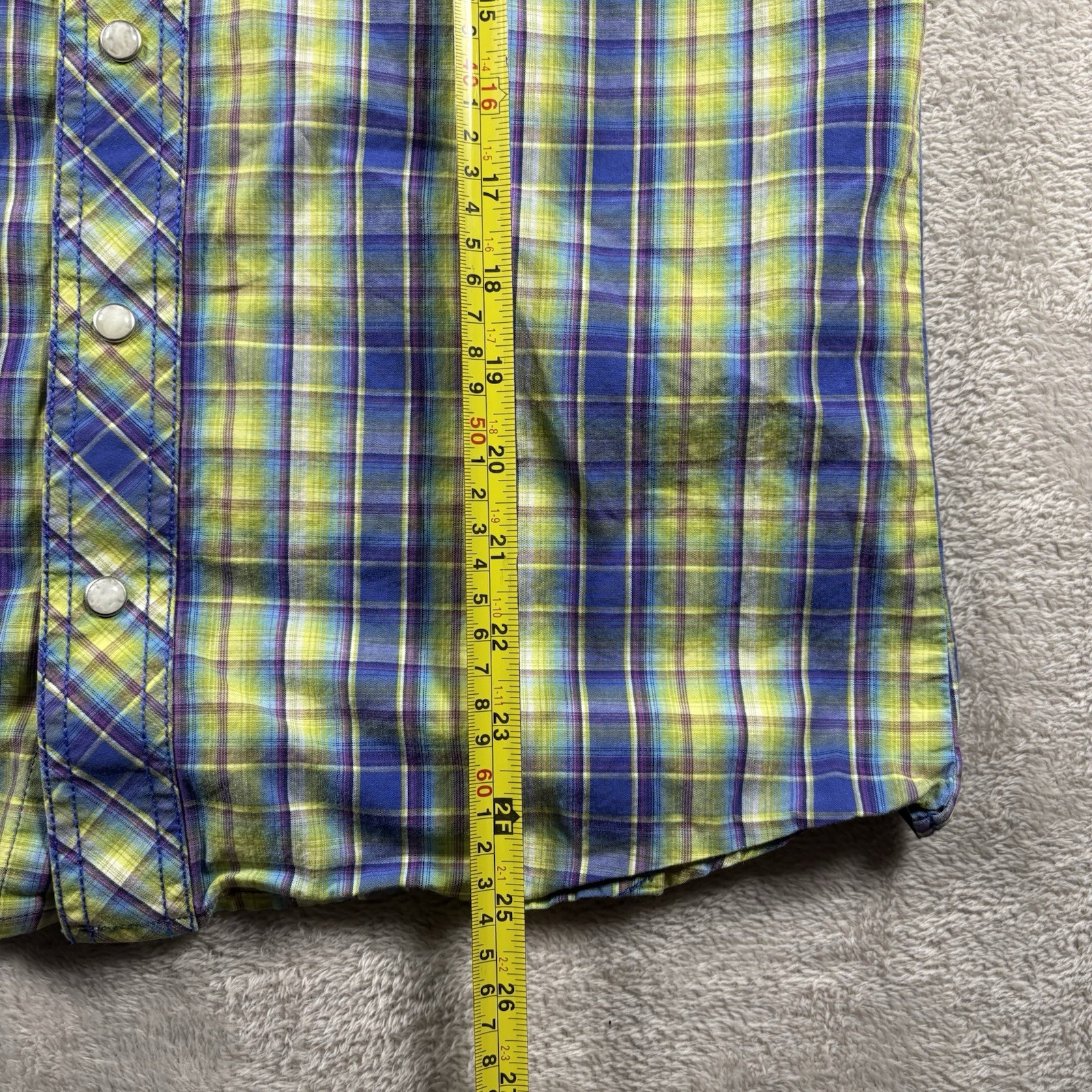 как выглядит Wrangler Western Pearl Snap Men S Green Blue Plaid Short Sleeve Shirt Rodeo 2780 фото