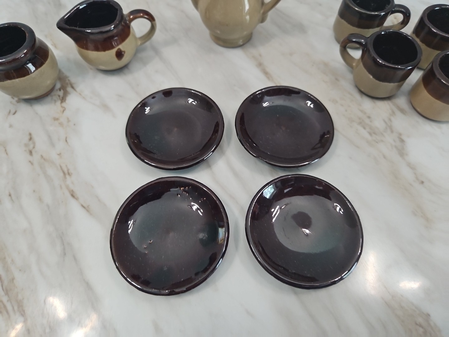 как выглядит Vintage Stoneware Ceramic Mini Childs Tea 12 pc Set Cups Saucers Pitcher фото