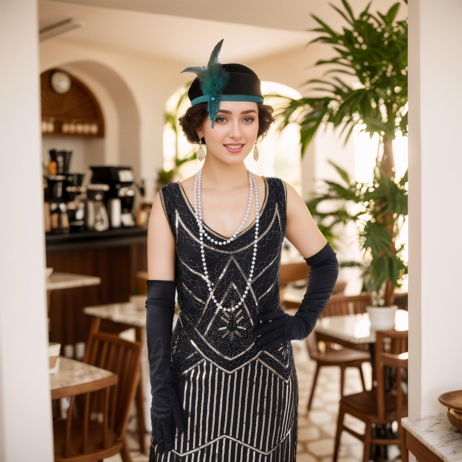 1 Pcs 1920s Flapper Headpiece Green Feather Headband Roaring 20s Gatsby Hair ...