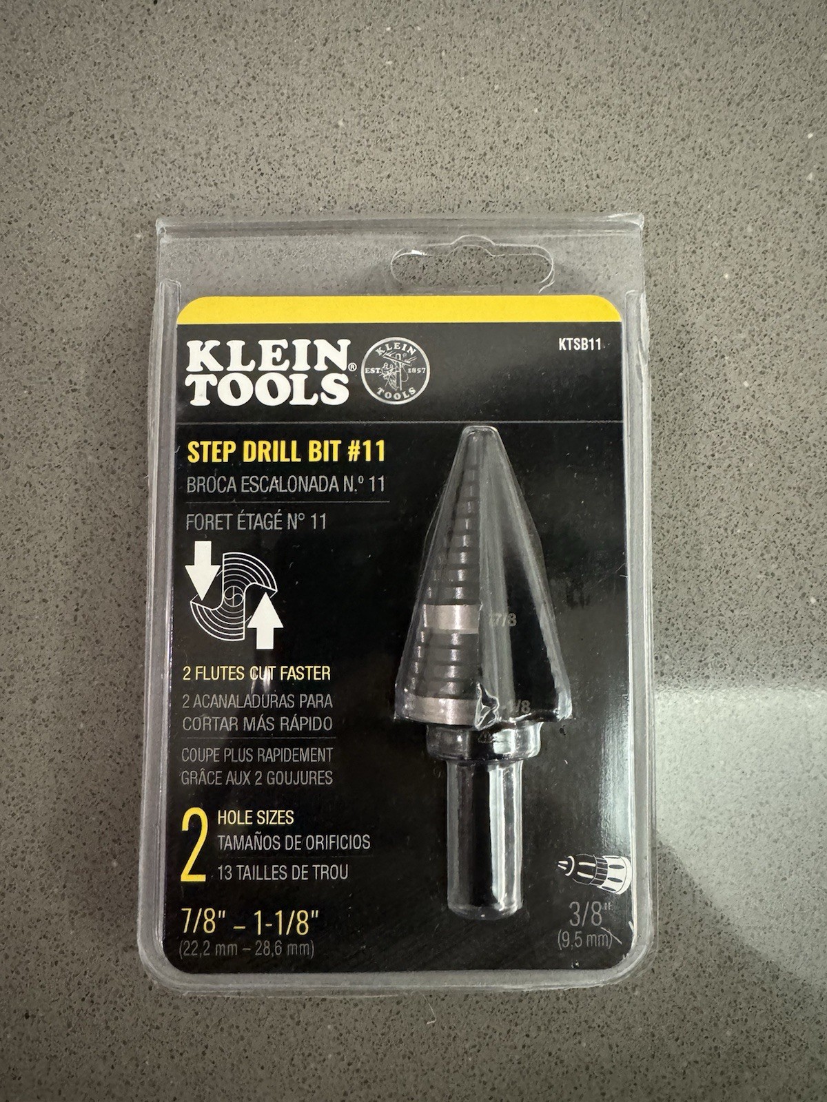 Klein Tools KTSB11 Double Fluted Step Drill Bit 7/8 Inch 1-1/8 Inch NEW