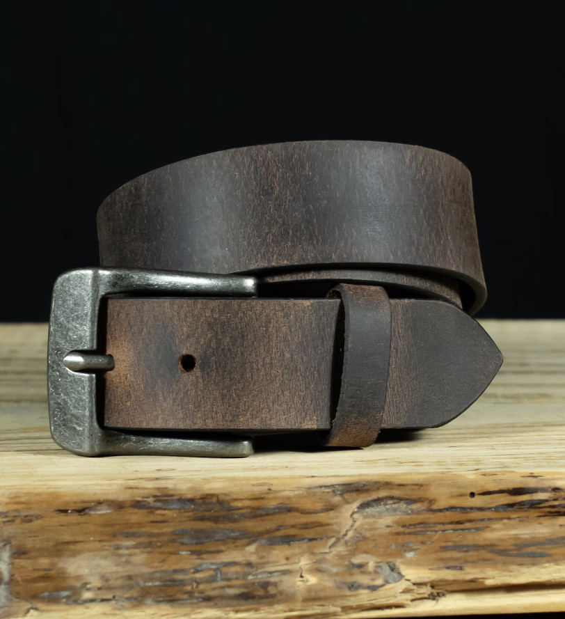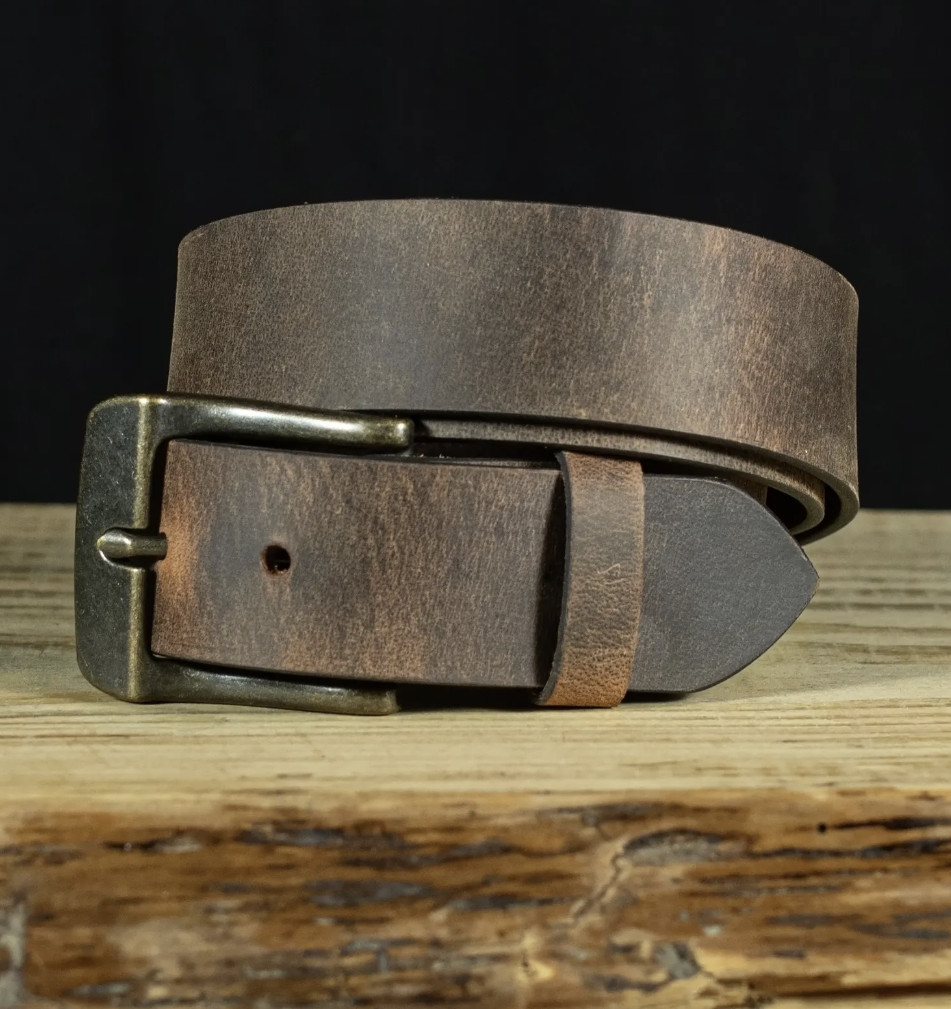 Mens Full Grain Leather Belt, 1.5 Inches Wide, Crazy Horse Finish, Made in USA