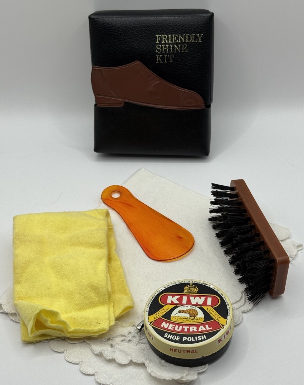 Vintage Friendly Travel Shoe Shine Kit Complete W Kiwi Polish Kit Never Used