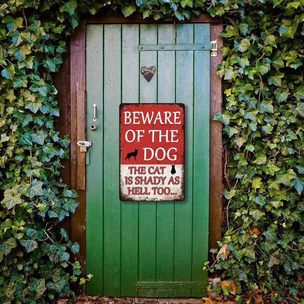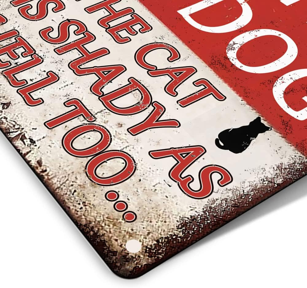 Beware Of Dog Sign Beware Of The Dog The Cat Is Shady Too Tin Sign Funny Warning