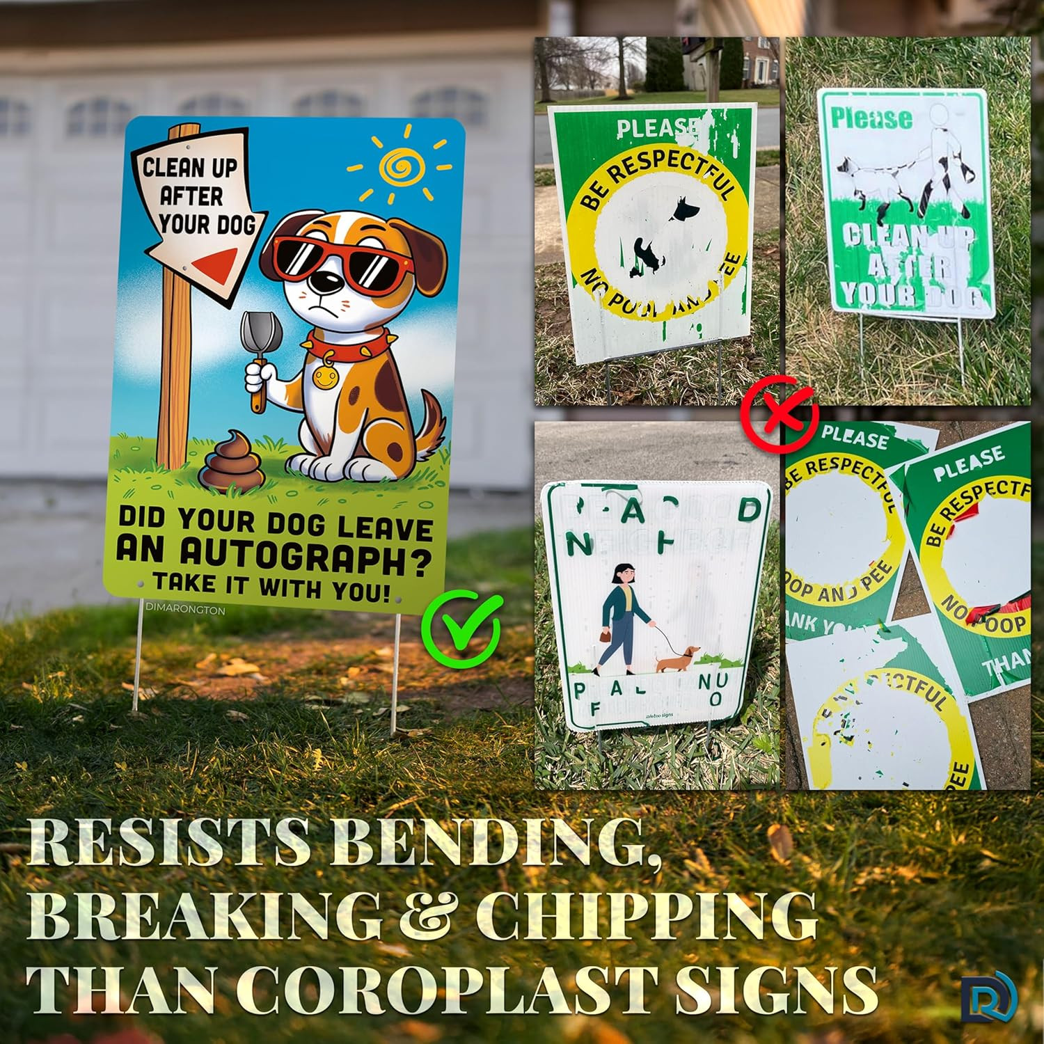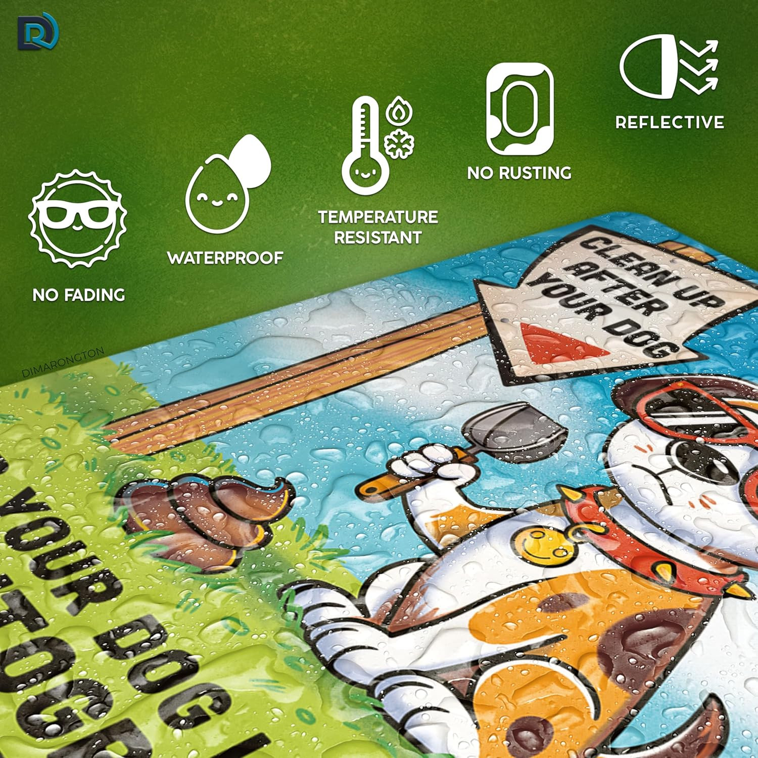 как выглядит 2 PC Clean Up After Your Dog Signs, 8x12 Aluminum 1mm Reflective No Dog Poop Sig фото