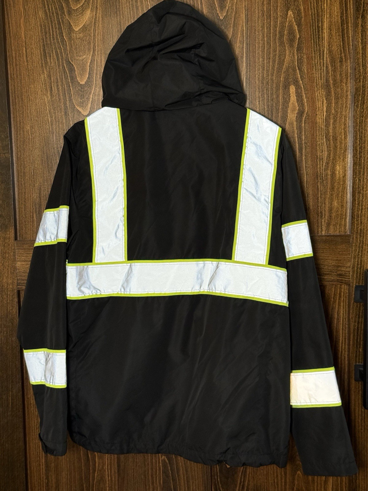 HI-VIS Weather Club Black White Reflective Safety Rain Jacket Size Med 169484