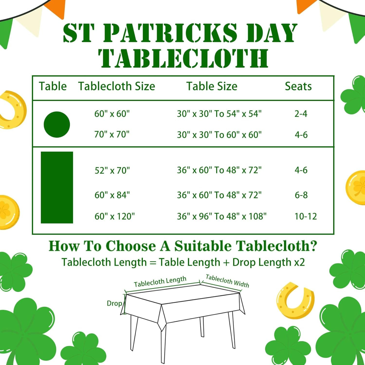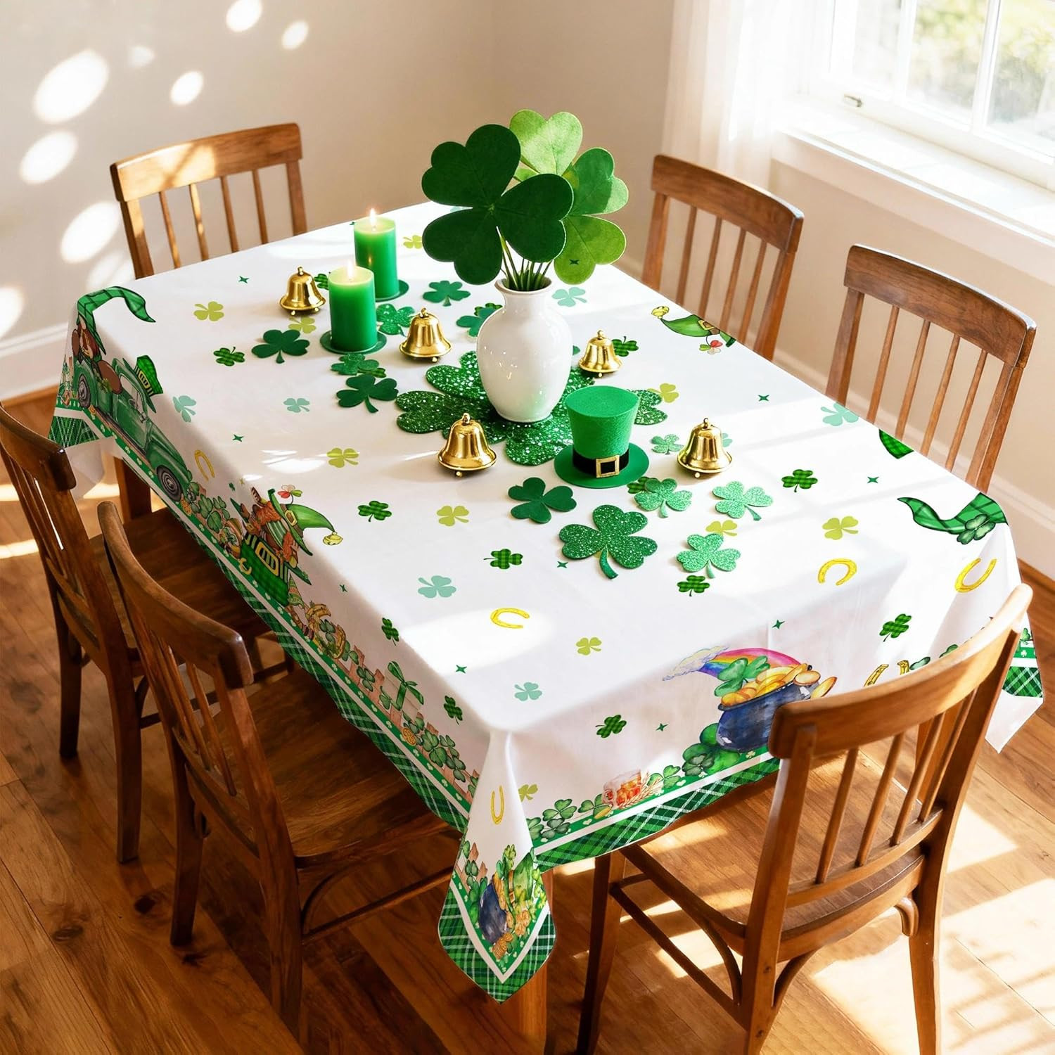 St Patricks Day Tablecloth Rectangle 60 X 84 Inch, Green Shamrocks St Patrick'S