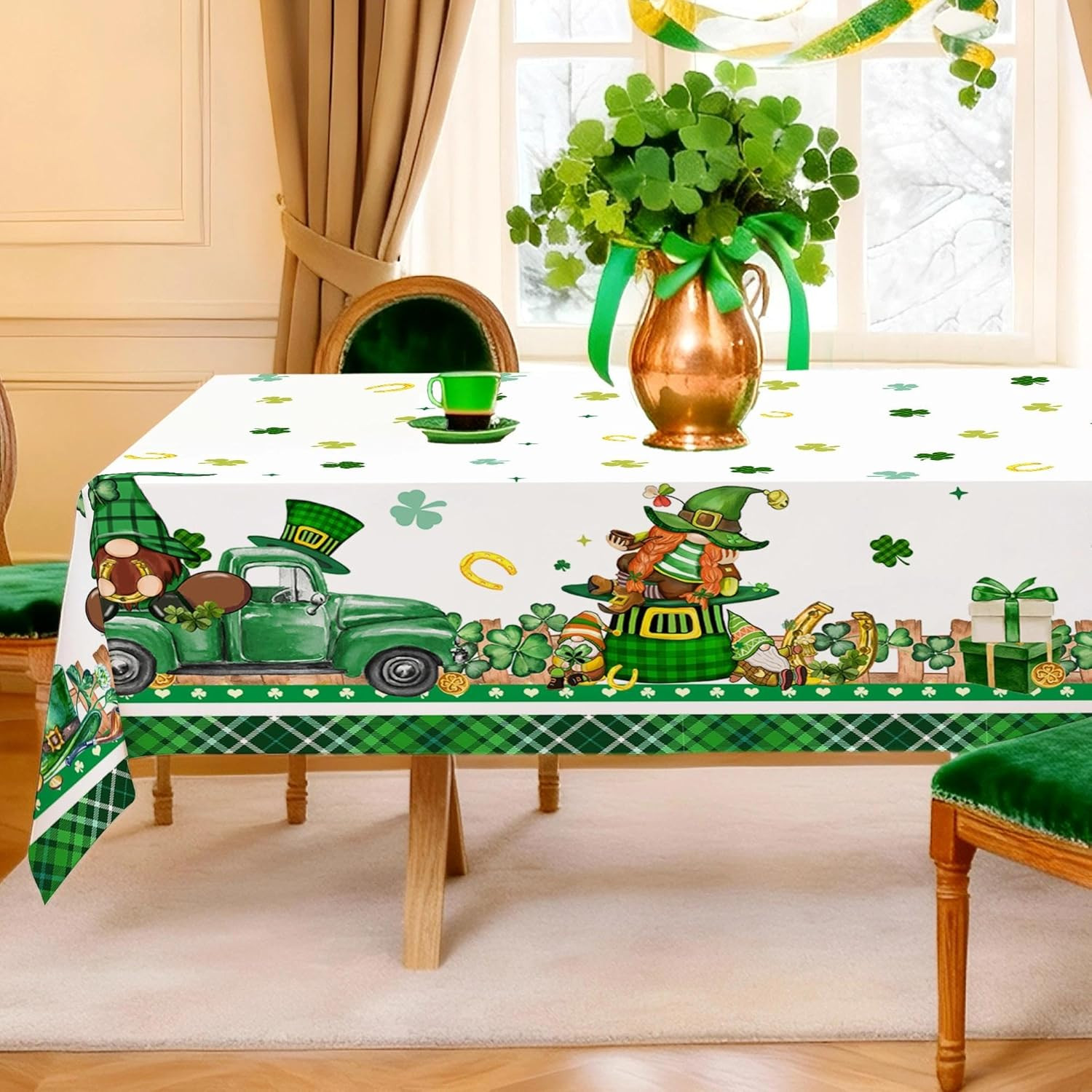 как выглядит St Patricks Day Tablecloth Rectangle 60 X 84 Inch, Green Shamrocks St PatrickS фото