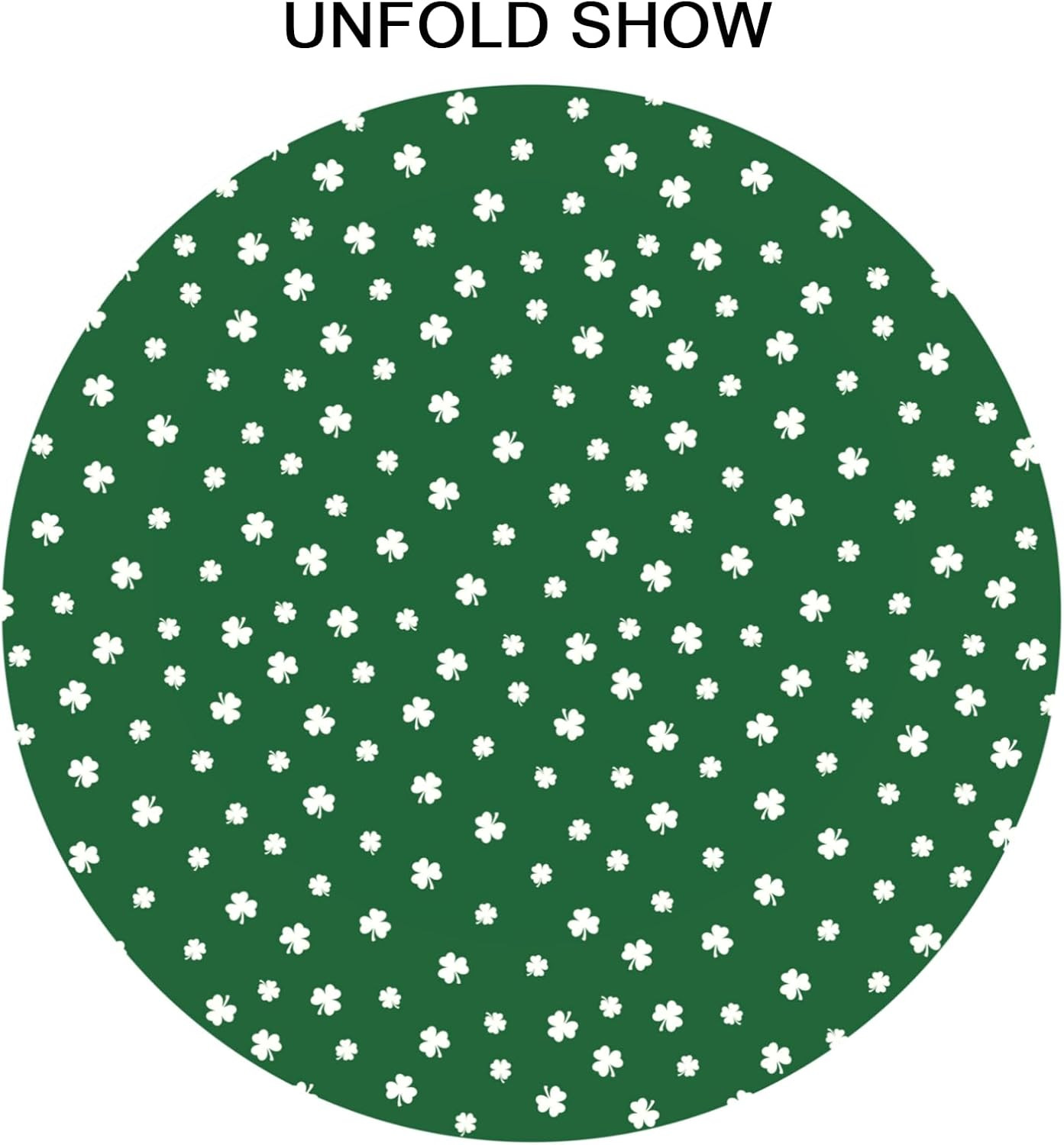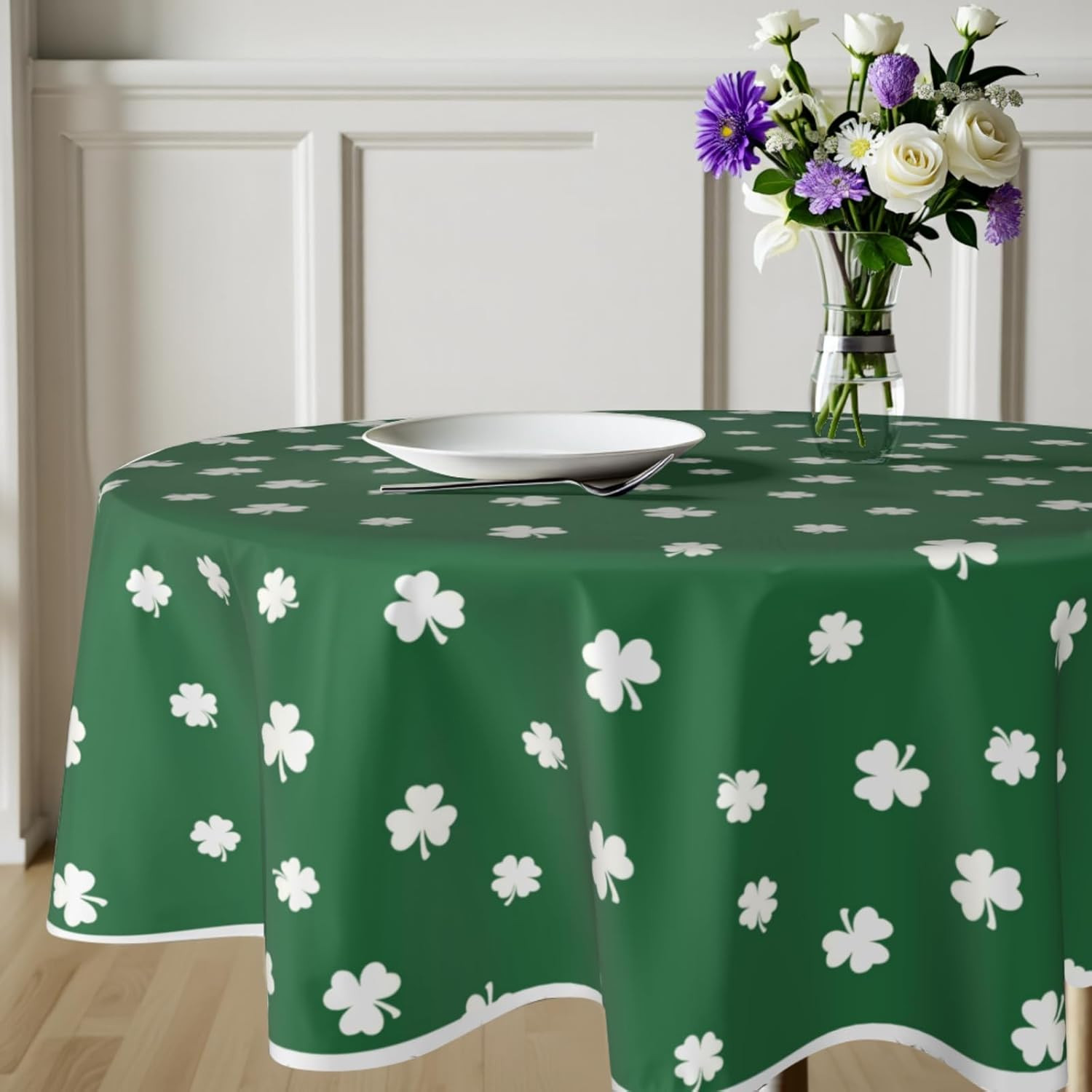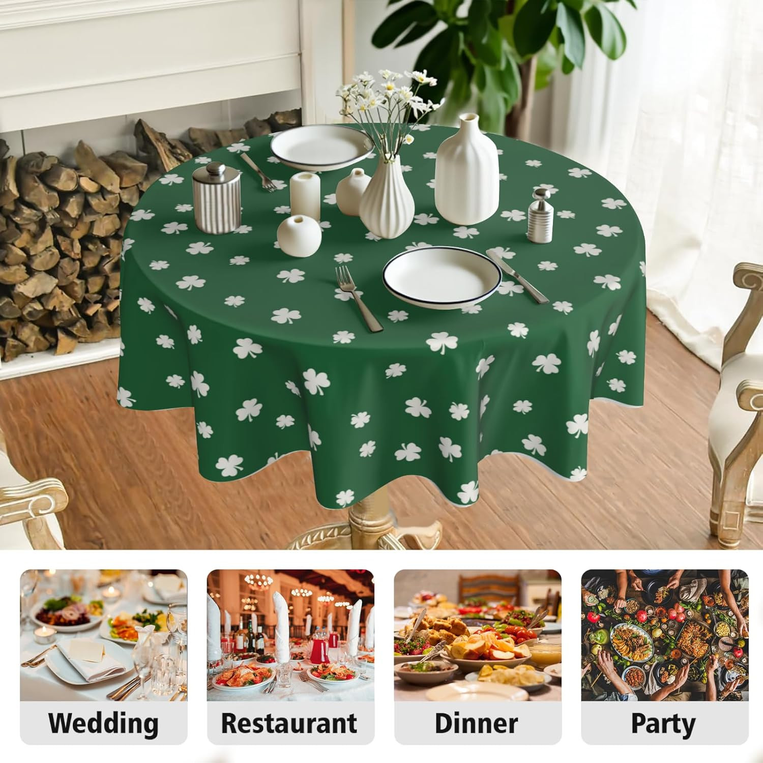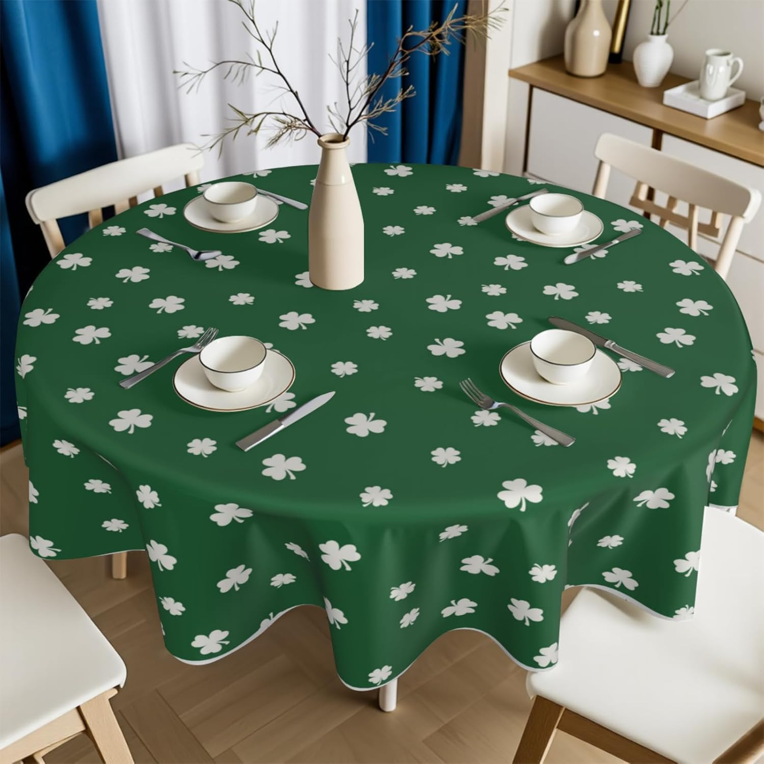 Green St Patricks Day Tablecloth round 70 Inch White Shamrock Lucky Clover Saint