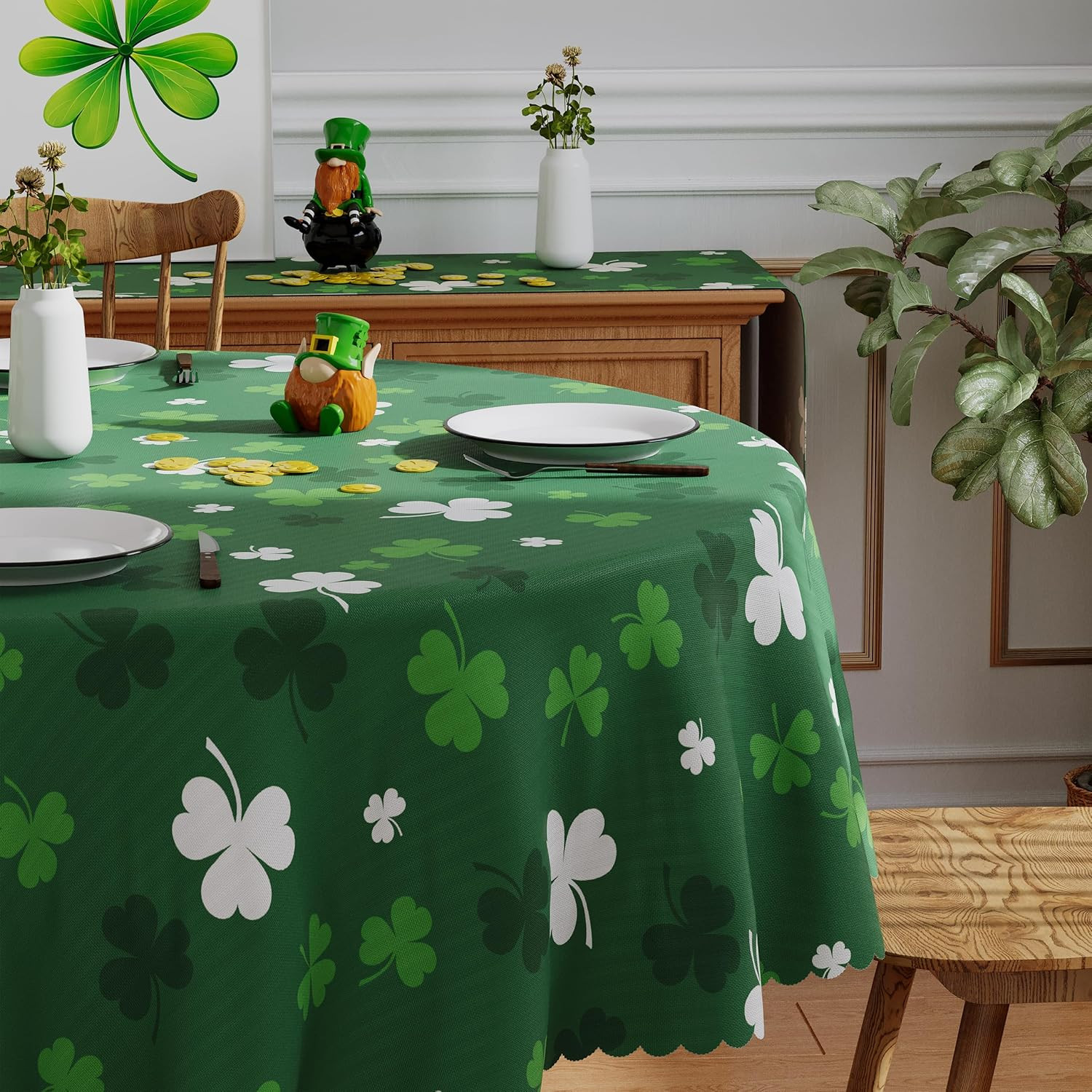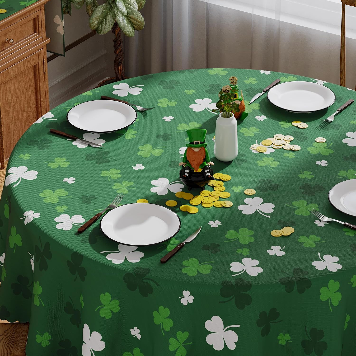 St Patricks Day round Tablecloth 60X60 Inch, Washable Green Shamrock Lucky St Pa