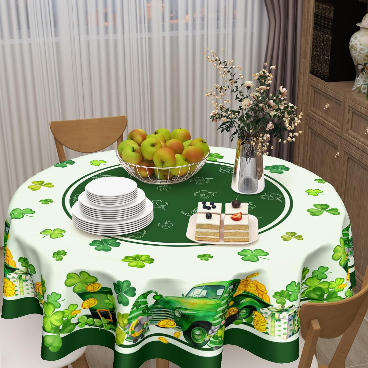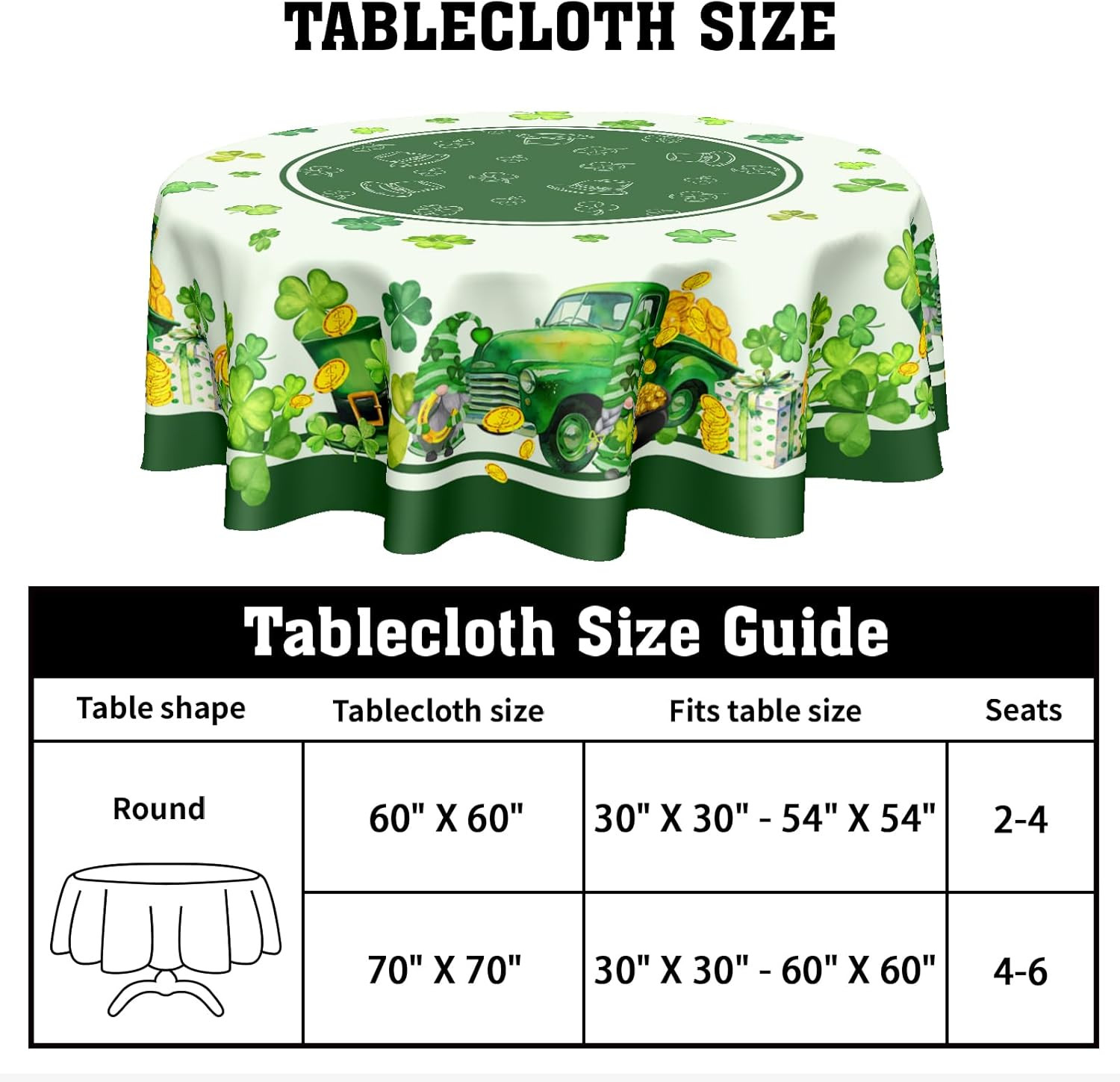 St Patricks Day round Tablecloth 70 Inch Green St Patrick'S Day Shamrocks Gnome