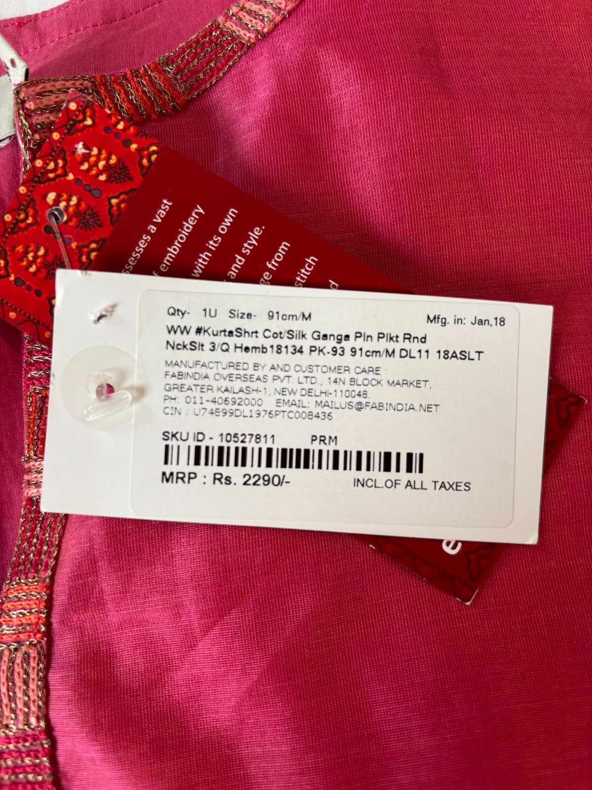 BRAND NEW Fab India Women s Kurta Medium Cotton Silk Hand Embroidered Ganga