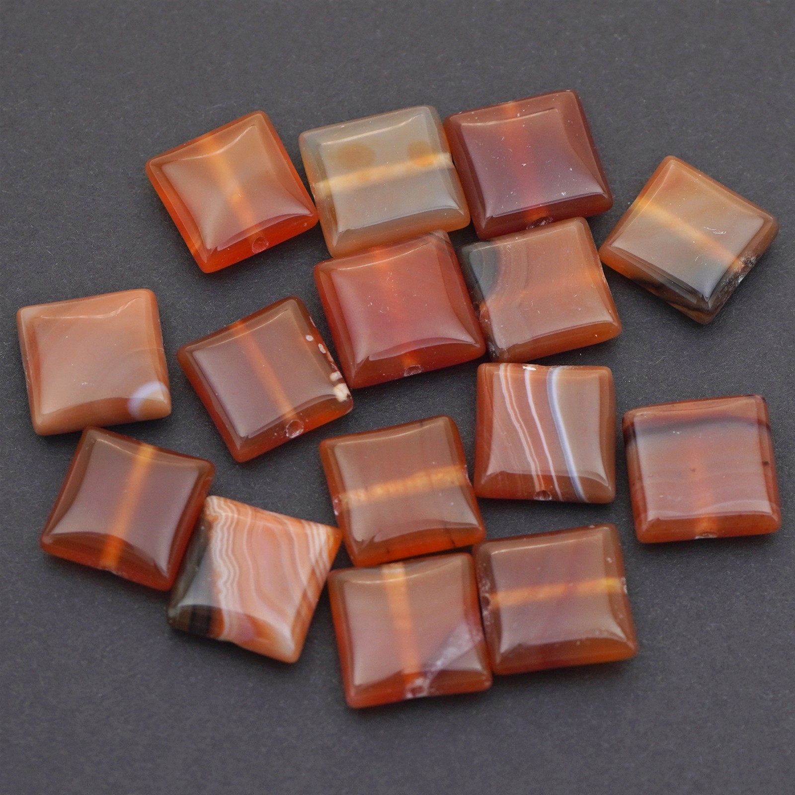 15 small flat square carnelian beads red semiprecious stone avg 12mm