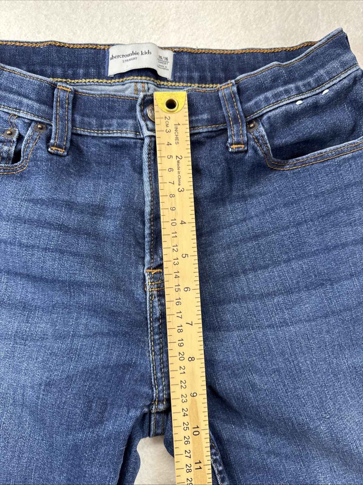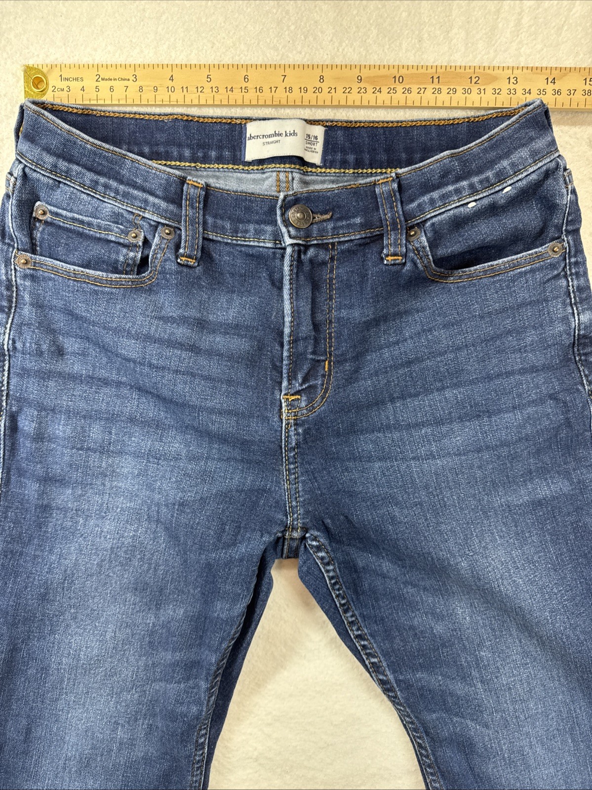 как выглядит Abercrombie Kids Jeans Sz 15/16 Short Straight Leg Dark Blue Casual School фото