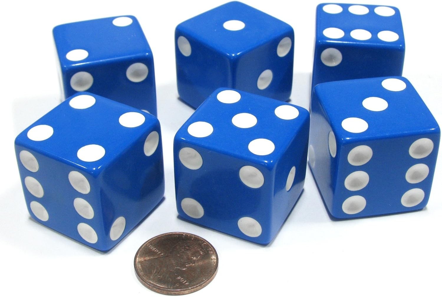 Set of 6 D6 25mm Large Opaque Jumbo Dice - Blue with White Pip